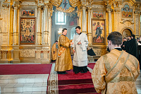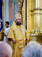 По окончании богослужения было совершено славление святым первоверховным апостолам, после чего архиепископ Фома зачитал поздравительный адрес от Святейшего Патриарха Кирилла имениннику — митрополиту Павлу.