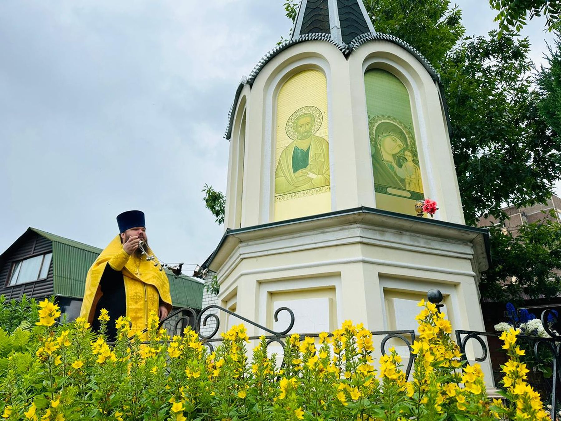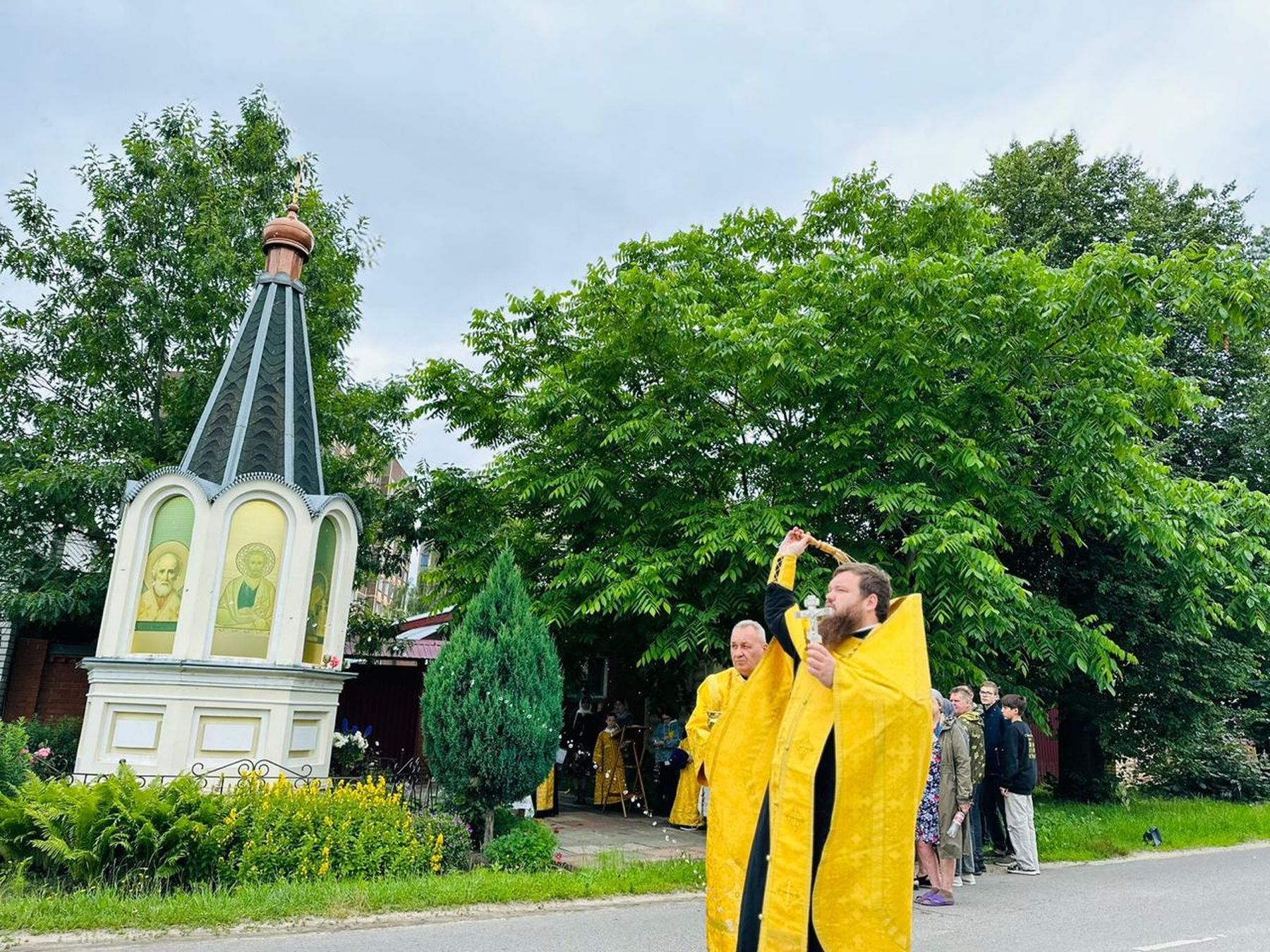 12 июля, в день памяти святых первоверховных апостолов Петра и Павла, благочинный церквей Павлово-Посадского округа священник Александр Анохин в сослужении духовенства благочиния совершил праздничный водосвятный молебен у Петропавловской часовни на улице Карповская города Павловский Посад.