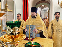 14 июля, в пятницу 6-й седмицы по Пятидесятнице, в день памяти святых бессребреников и целителей Космы и Дамиана, архиепископ Одинцовский и Красногорский Фома совершил Литургию в Богоявленском храме п. Красный.
