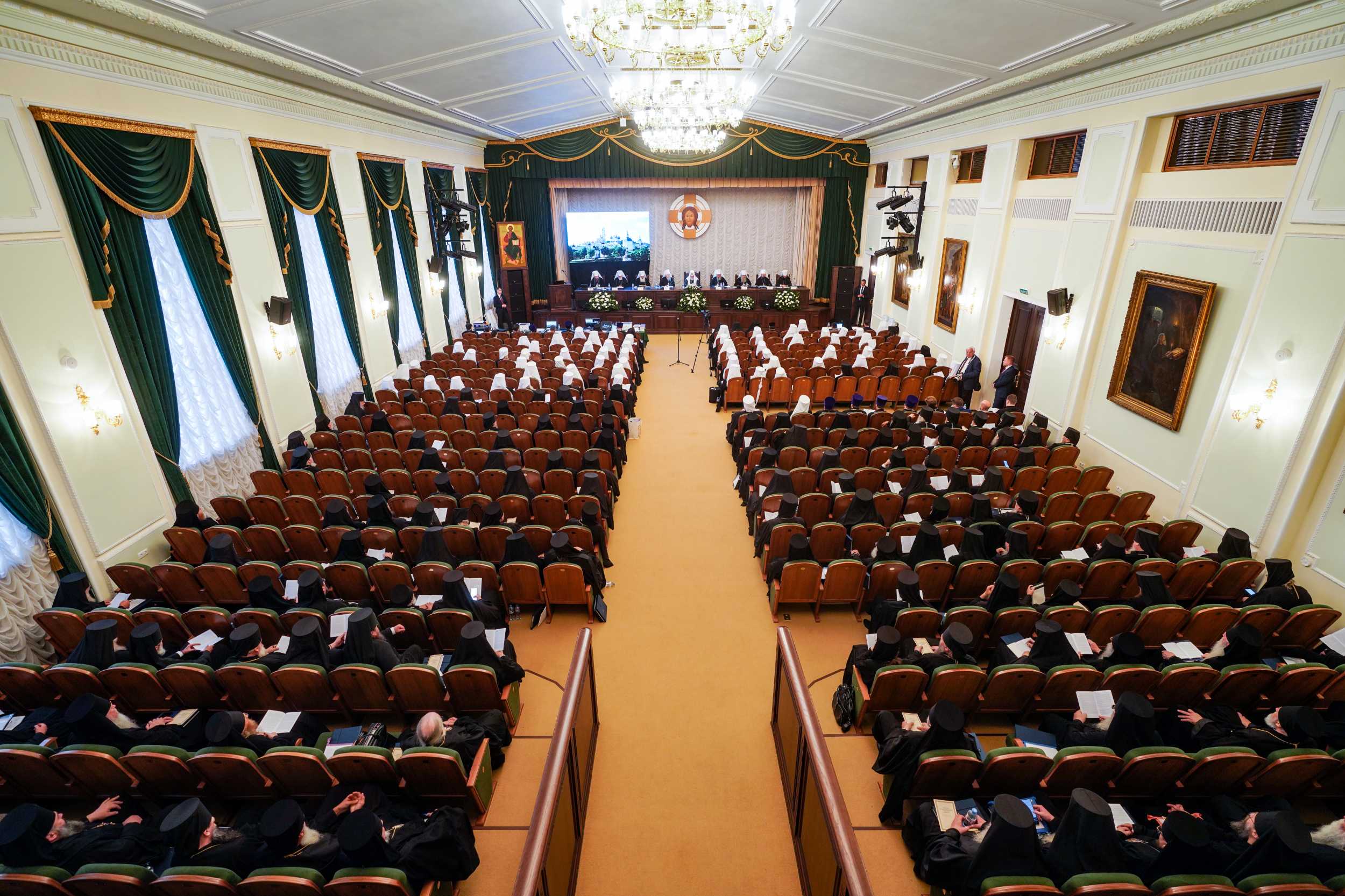 Предстоятель Русской Православной Церкви произнес вступительное слово, в котором приветствовал собравшихся и представил следующую повестку дня Архиерейского Совещания: