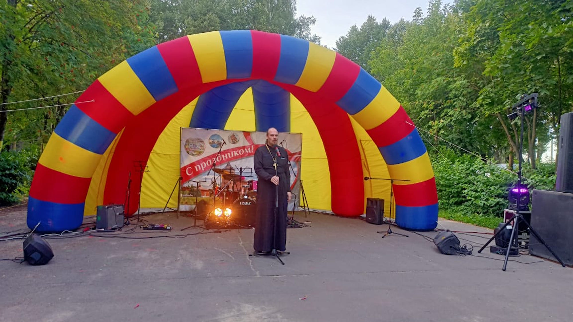 Праздничный концерт посетил настоятель Казанского храма поселка Радужный 2-го Коломенского благочиния иерей Александр Кузнецов, который обратился к собравшимся с поздравительным словом.