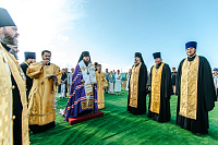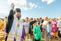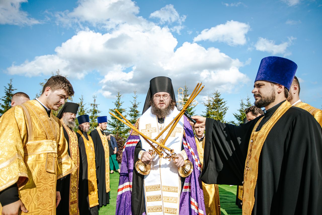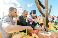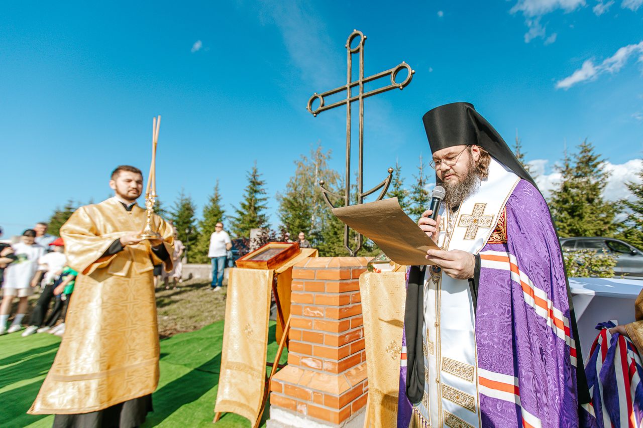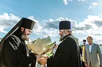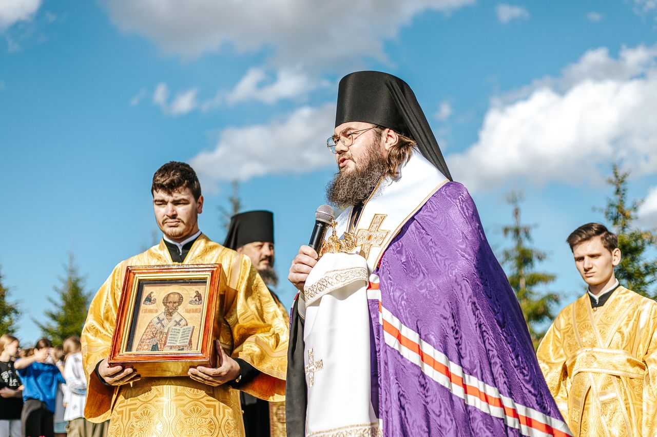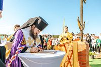 По окончании богослужения епископ Фома поздравил верующих с освящением места закладки храма: