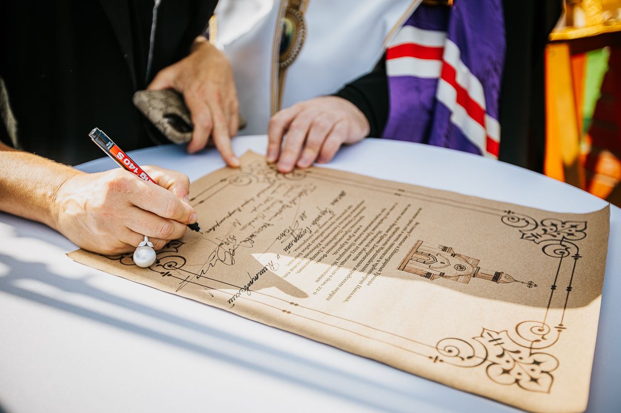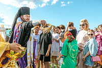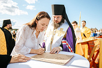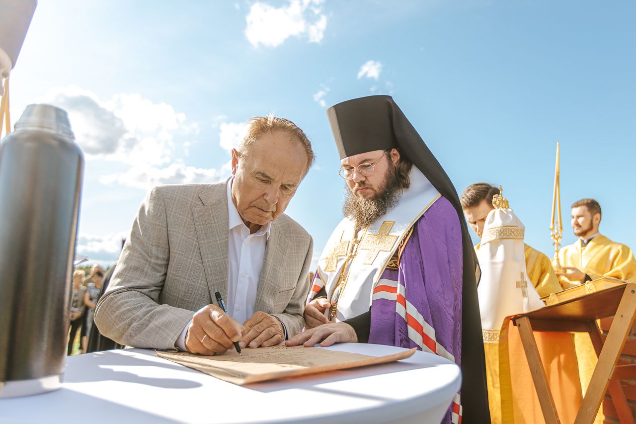 Я благодарю жителей этого поселка, всех тех, кто приложил усилия, чтобы здесь стоял полноценный храм, где будет совершаться самое главное Таинство – Таинство Святой Евхаристии. И сегодняшнее присутствие вас всех на этом месте – это яркое свидетельство того, что храм желанный.