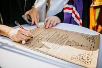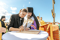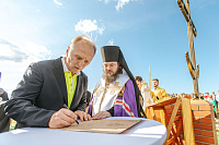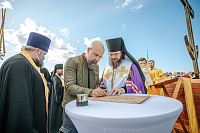 От всей души поздравляю всех вас с этим важным событием! Я надеюсь и возлагаю упование на то, что строительство этого храма не превратится в долгострой. Ведь если мы возложили на себя ответственность, проявили особое желание и усердие построить храм, то пусть на протяжении всего процесса это желание в нас не угасает. И я молюсь, чтобы в самое ближайшее время мы этим же составом собрались уже под сводами уютного красивого храма.