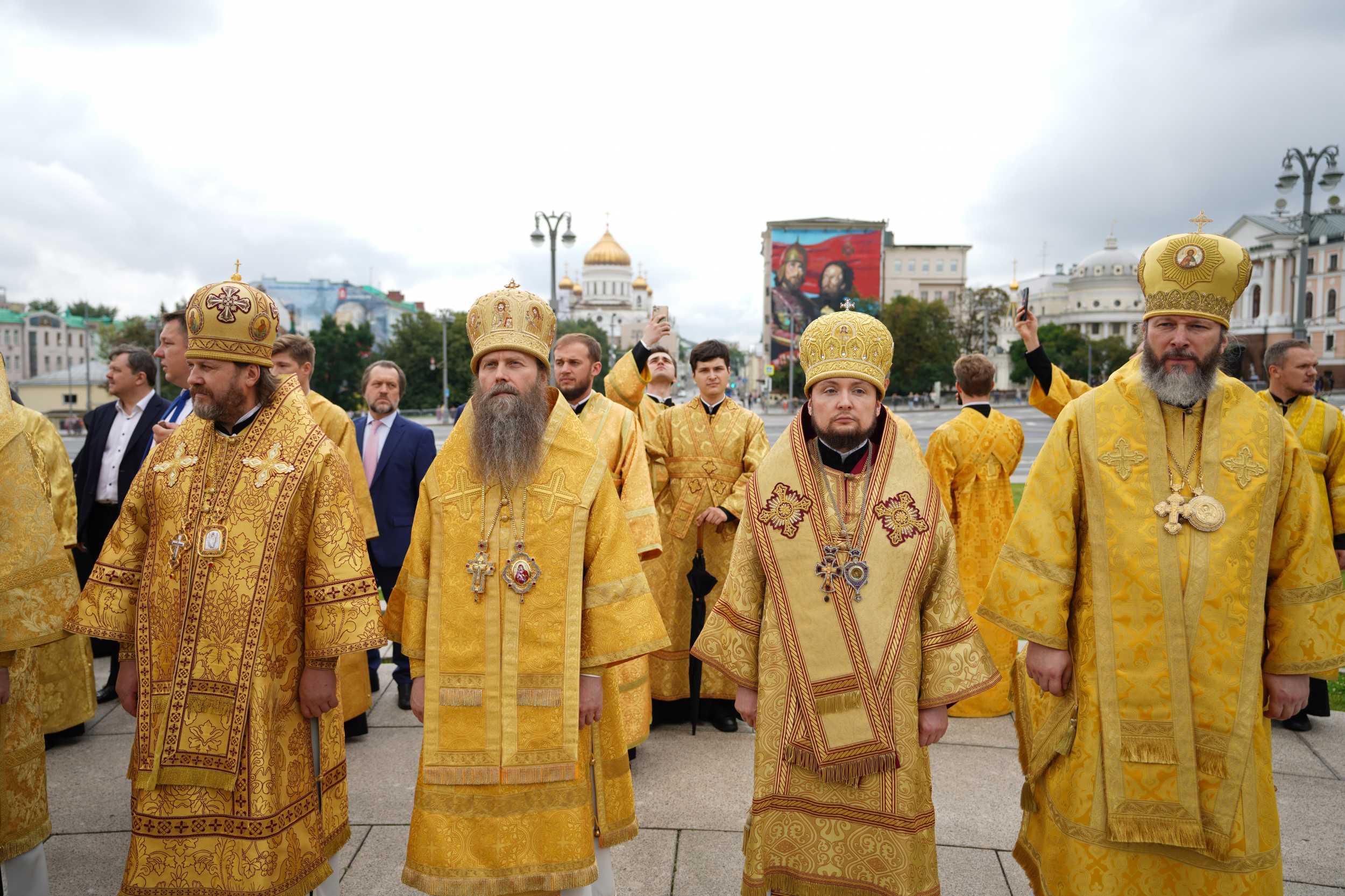 По окончании молебна Предстоятель Русской Православной Церкви обратился к собравшимся на Боровицкой площади с Первосвятительским словом.