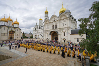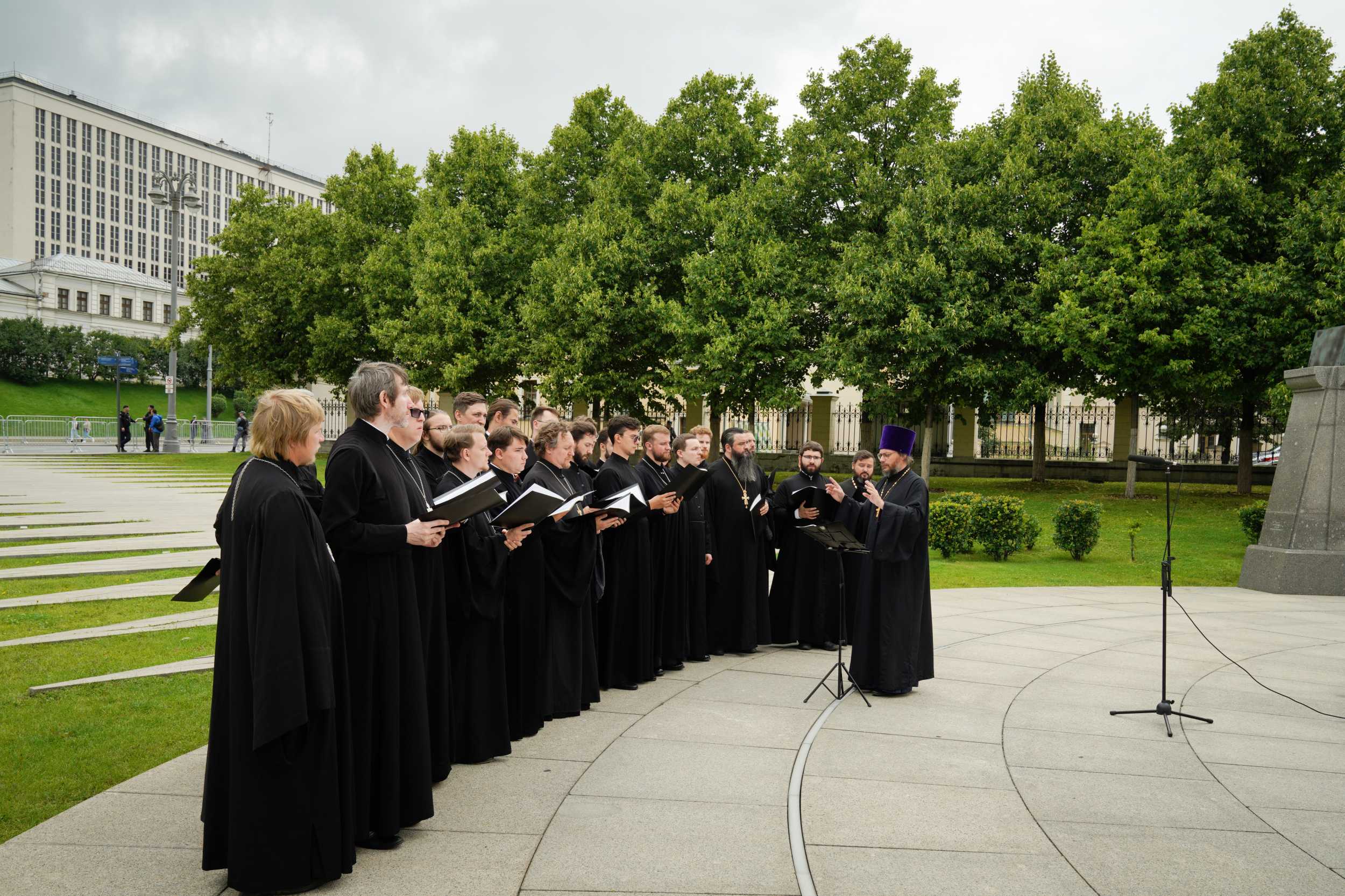 Богослужебные песнопения исполнил хор духовенства Московской митрополии под управлением иерея Сергия Голева.