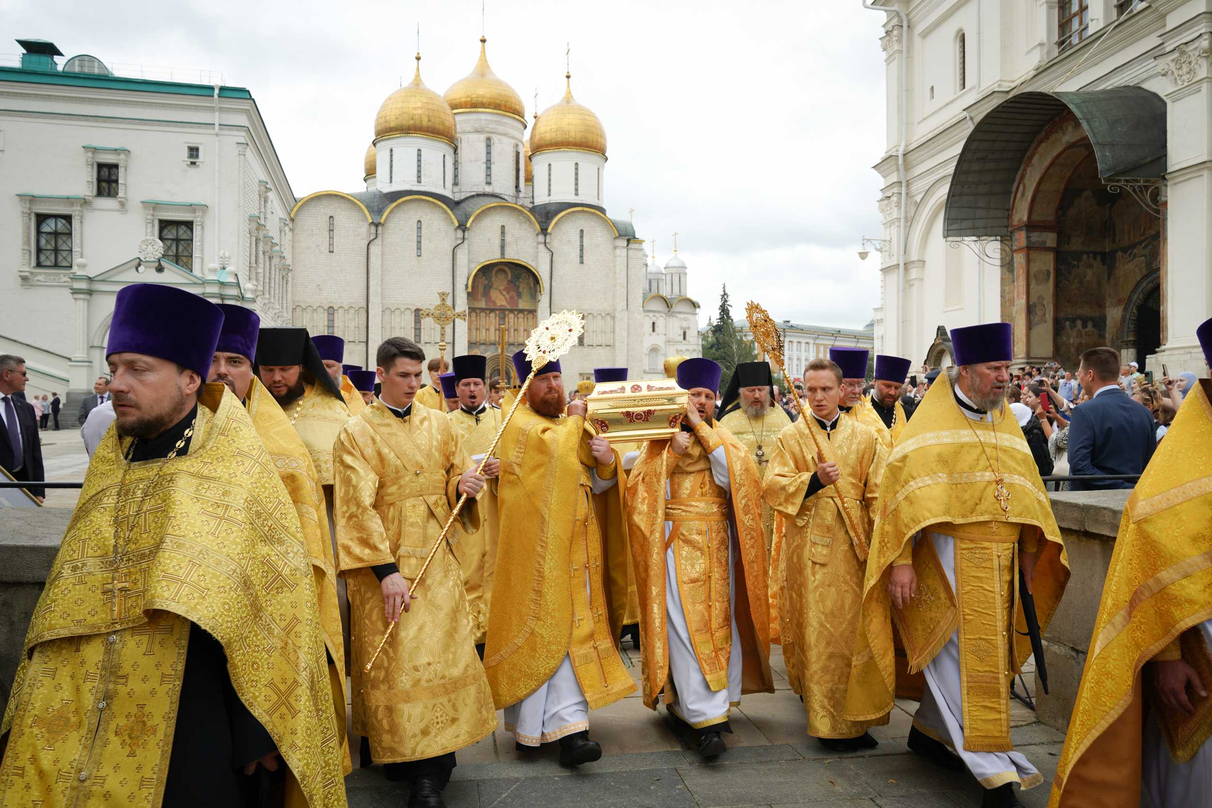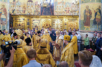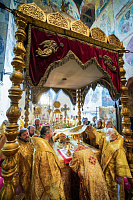 Из кафедрального соборного Храма Христа Спасителя в Успенский собор был принесен ковчег с частицей мощей равноапостольного великого князя Владимира.