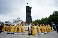 У памятника, где собрались клирики московских храмов, жители и гости столицы, было совершено молебное пение равноапостольному князю Владимиру.