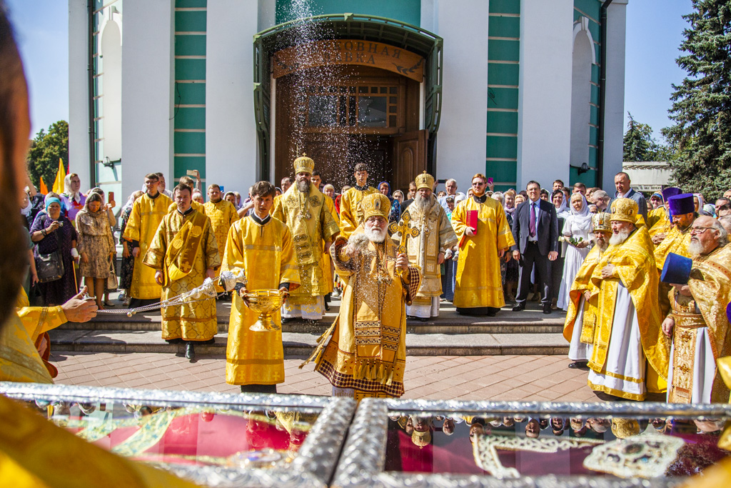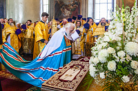 После Божественной литургии был совершен праздничный молебен и крестный ход с честными мощами Тамбовского чудотворца по территории собора.