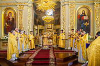Богослужебные песнопения исполнил Праздничный архиерейский хор Спасо-Преображенского кафедрального собора города Тамбова под управлением регента Н.А. Любимской.