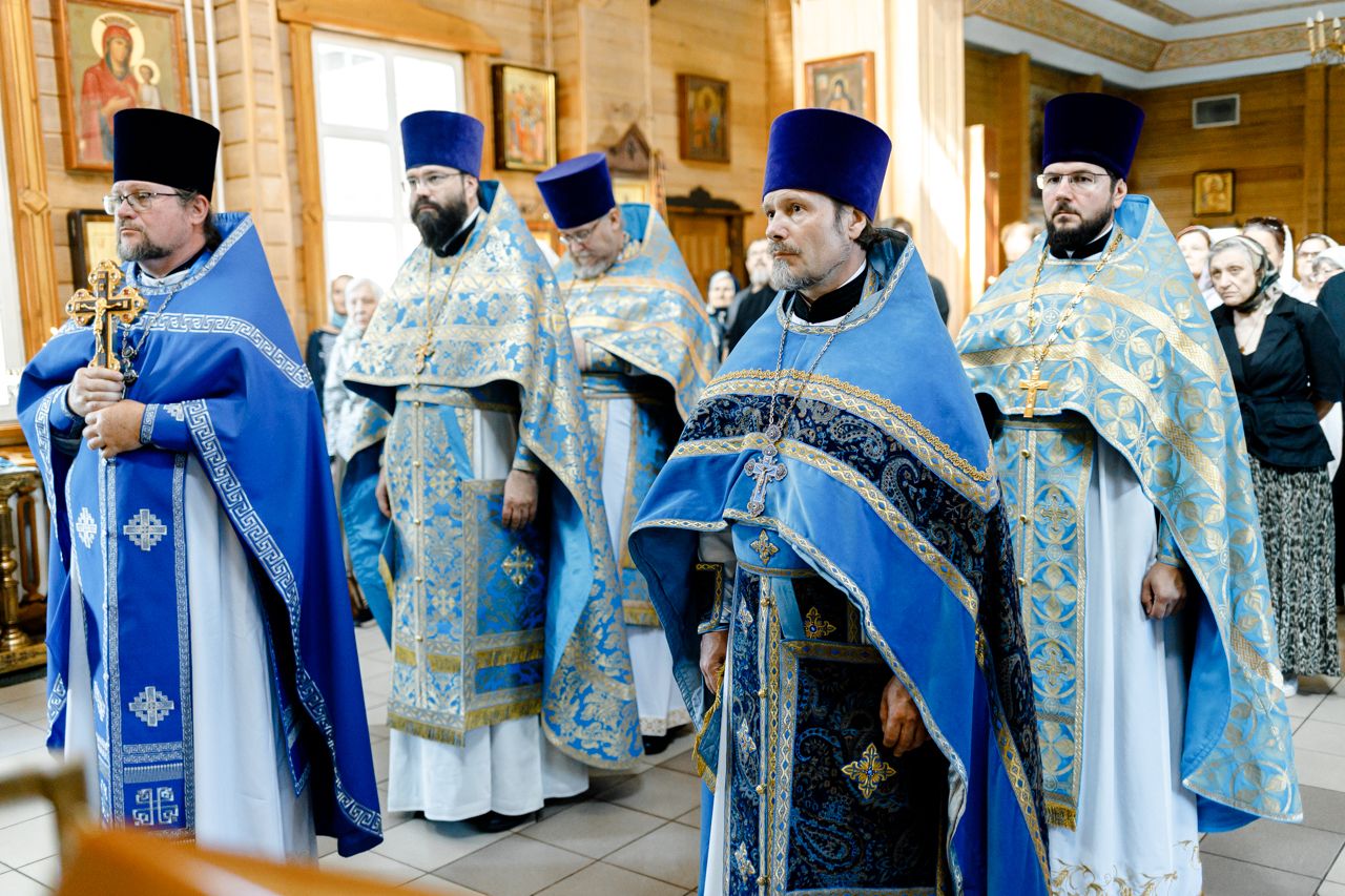 Его Преосвященству сослужили: секретарь Сергиево-Посадской епархии, благочинный Мытищинского церковного округа протоиерей Димитрий Оловянников, благочинный Долгопрудненского церковного округа протоиерей Андрей Хмызов, благочинный Химкинского церковного округа протоиерей Артемий Гранкин, настоятель храма в честь Донской иконы Божией Матери протоиерей Иоанн Осипов и приглашенное духовенство.