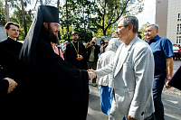 Затем Преосвященный Фома преподнес в дар будущему храму икону Святой Троицы.