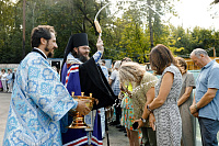 Его Преосвященству сослужили: Секретарь Сергиево-Посадской епархии благочинный Мытищинского церковного округа протоиерей Димитрий Оловянников, благочинный Долгопрудненского церковного округа протоиерей Андрей Хмызов, настоятель строящегося храма в честь иконы Божией Матери «Седмиезерная» протоиерей Александр Мензелинцев и заместитель благочинного Мытищинского церковного округа иерей Вячеслав Тихомиров.