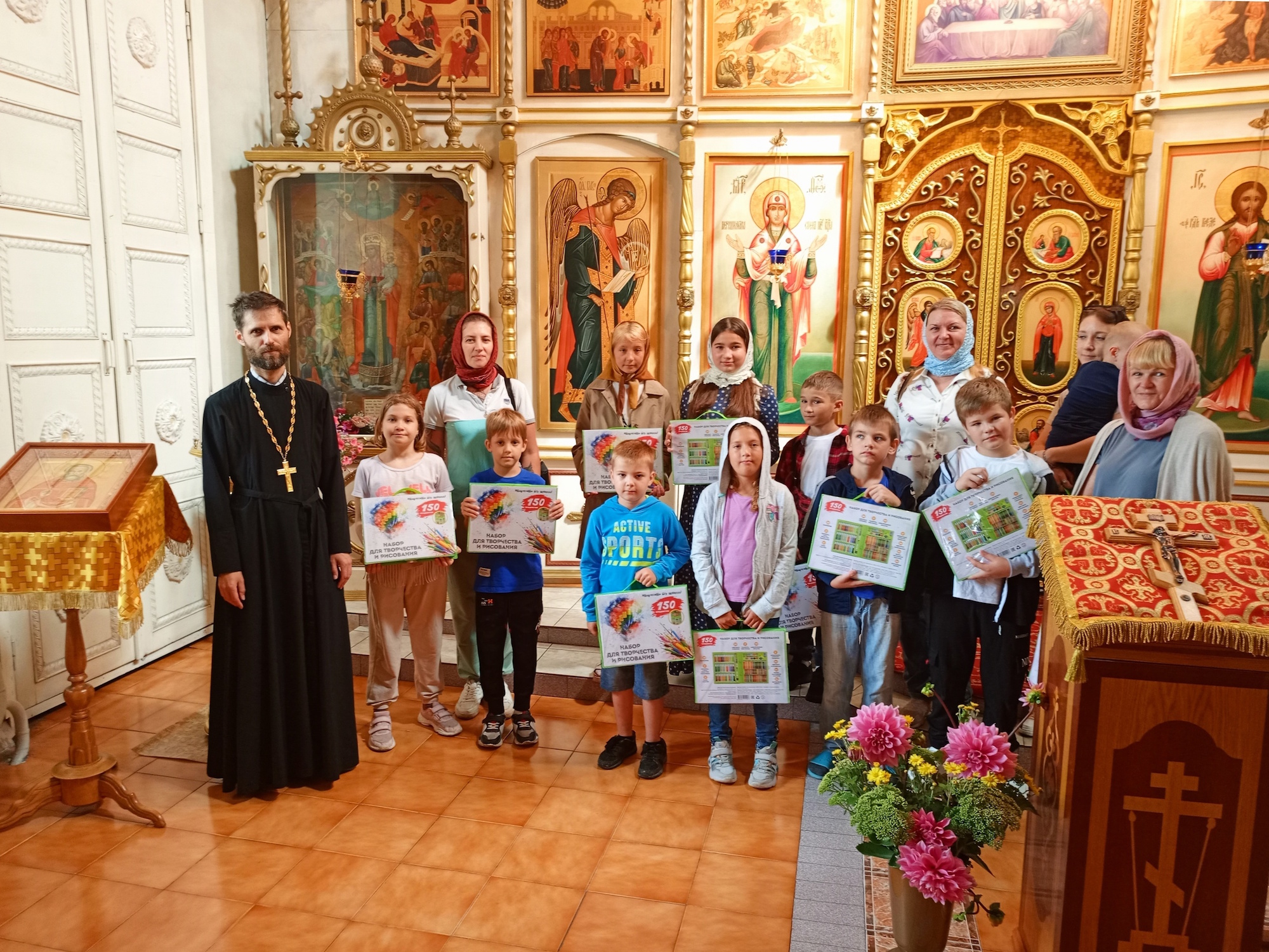 14 августа в Успенском храме села Константиново 2-го Воскресенского благочиния настоятель иерей Сергий Котерев перед началом учебного года вручил наборы для творчества детям из многодетных семей г. о. Воскресенск.