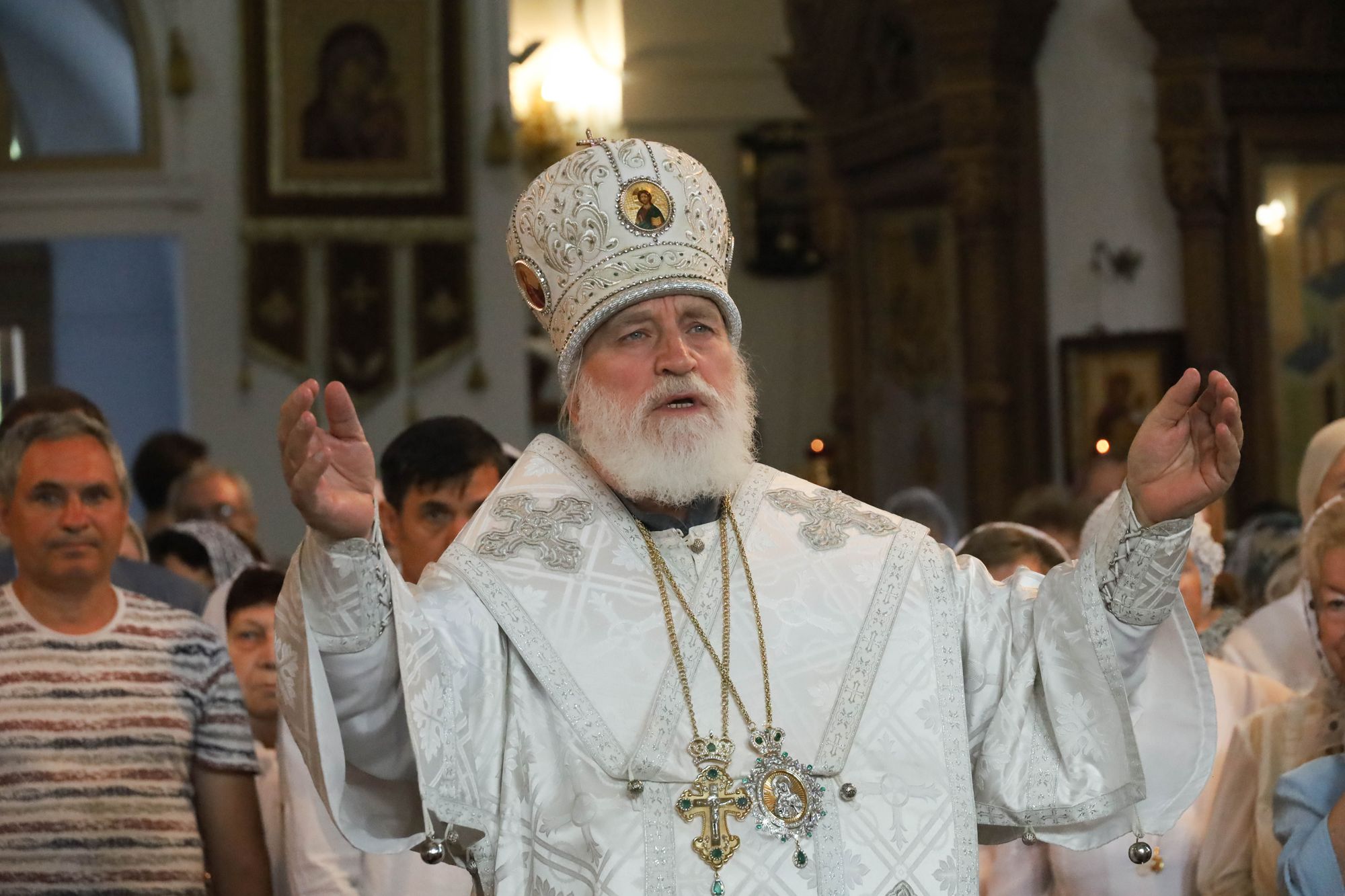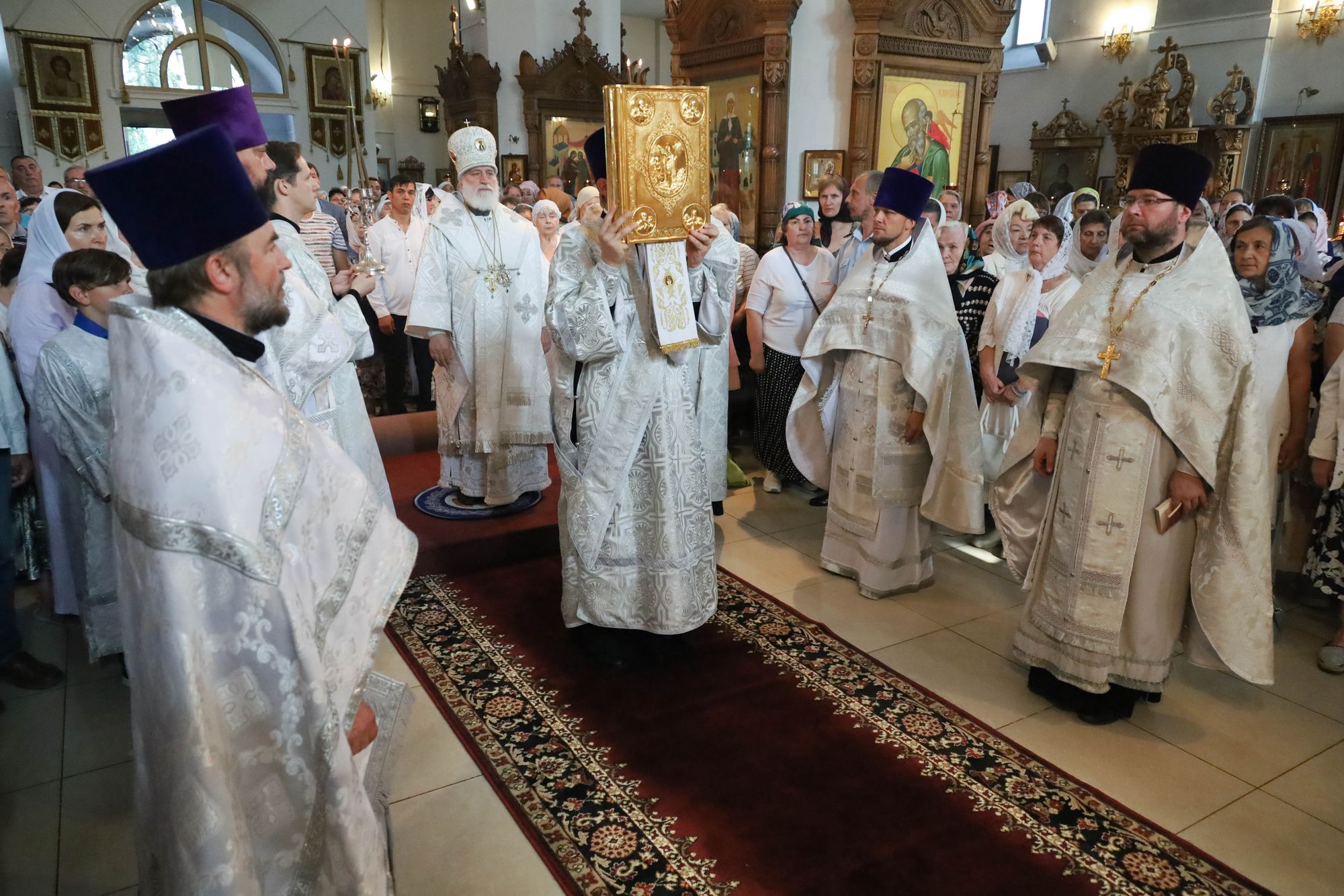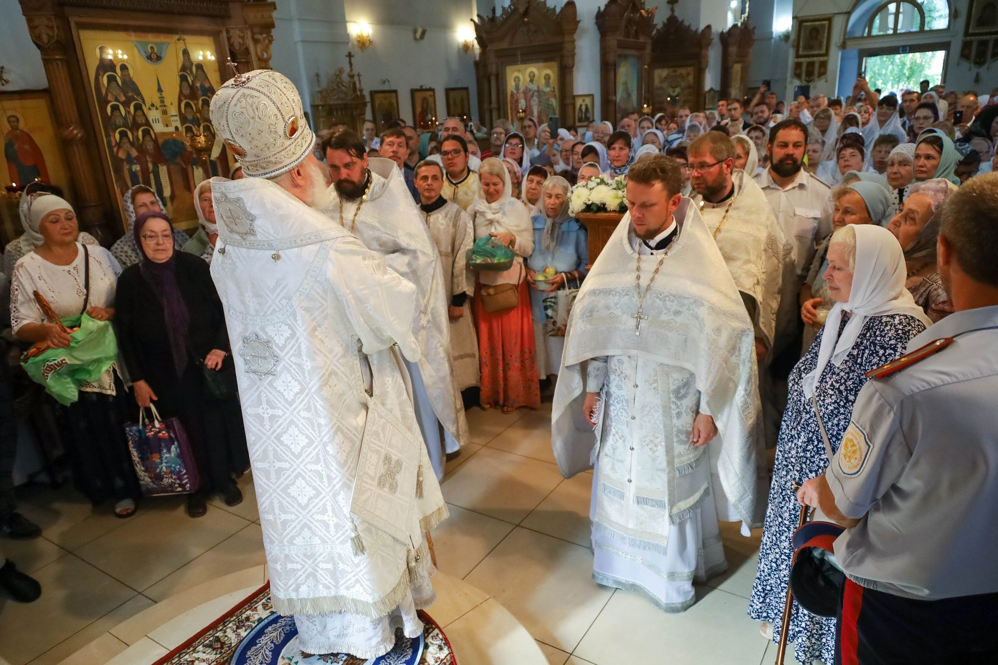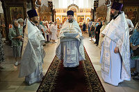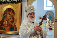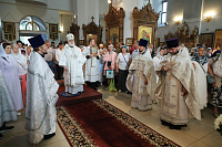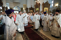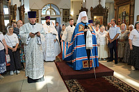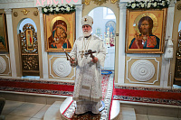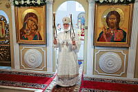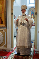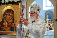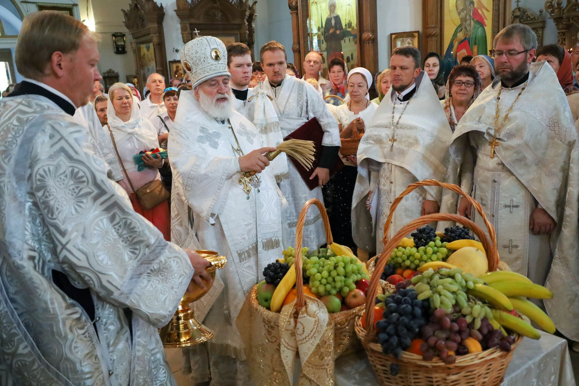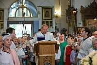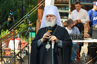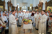 По окончании богослужения были совершены славление праздника и освящение плодов нового урожая, после чего Владыка обратился к молящимся с архипастырским словом.