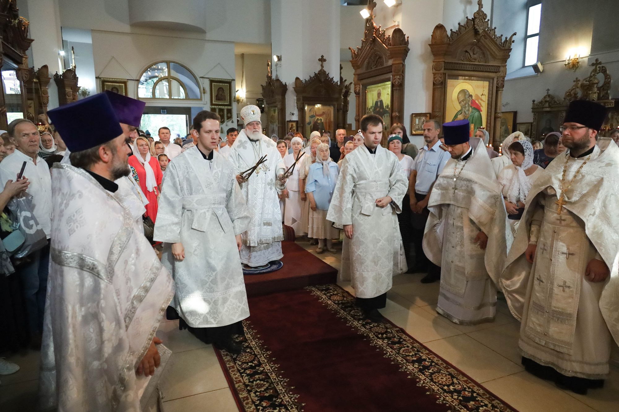 Его Высокопреосвященству сослужили: благочинный Жуковского округа и настоятель храма иерей Димитрий Денисов, благочинный 1-го Бронницкого округа иерей Сергий Себелев и клирики благочиния.
