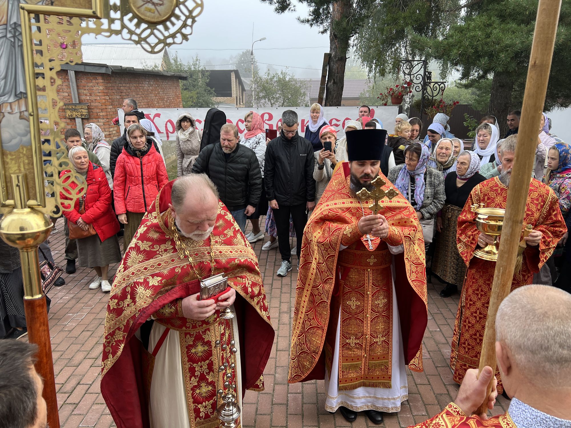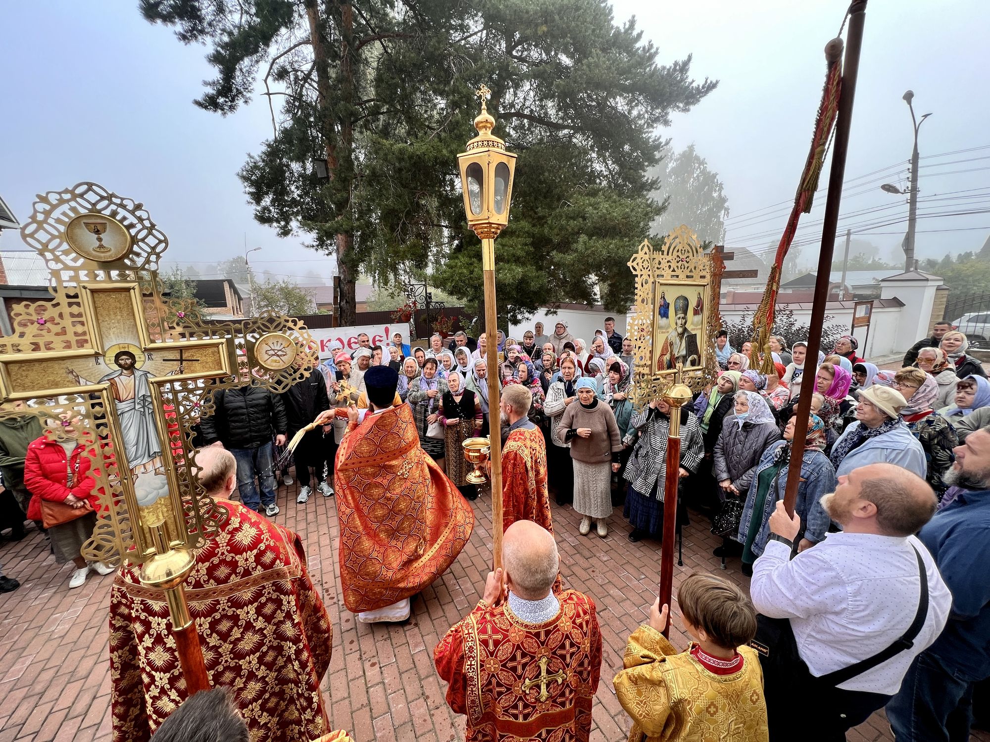 По окончании Божественной литургии был совершен Крестный ход и праздничный молебен. После чего отец Николай обратился к молящимся с пастырским словом, а также поздравил присутствующих с престольным праздником.