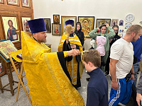Участниками молебна стали юные спортсмены из разных городов Подмосковья, которые в сопровождении православного священника – ответственного по вопросам физической культуры и спорта Подольского епархии иерея Владимира Брагина, попечением Министерства физической культуры и спорта Московской области, были направлены на I Всероссийские спортивные игры святого благоверного князя Александра Невского в г. Кемерово.