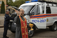 19 сентября в пожарно-спасательной части Серебряных Прудов состоялось мероприятие, посвящённое празднику иконы Божией Матери "Неопалимая Купина". В тот день гараж спасателей пополнился новым специальным автомобилем, который был освящен после короткого молебна.