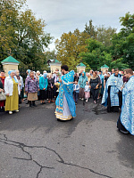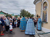 По окончании Божественной литургии и крестного хода настоятель священник Иоанн Качанкин поздравил собравшихся с праздником.