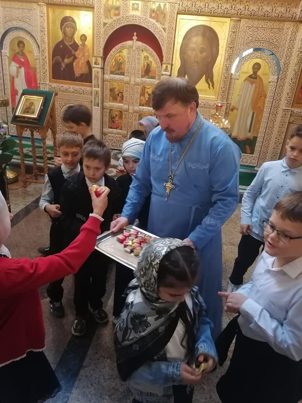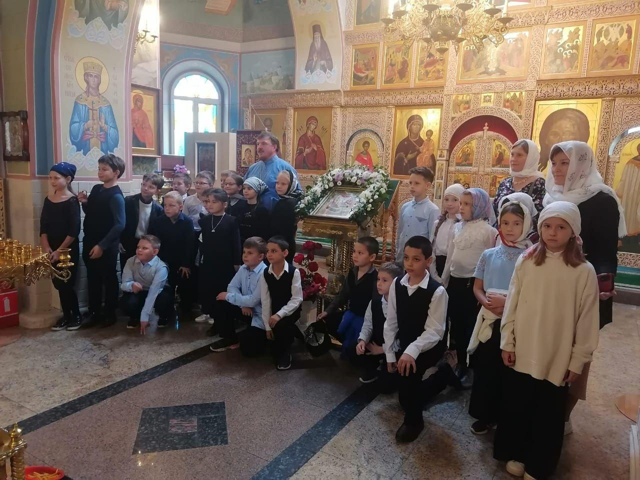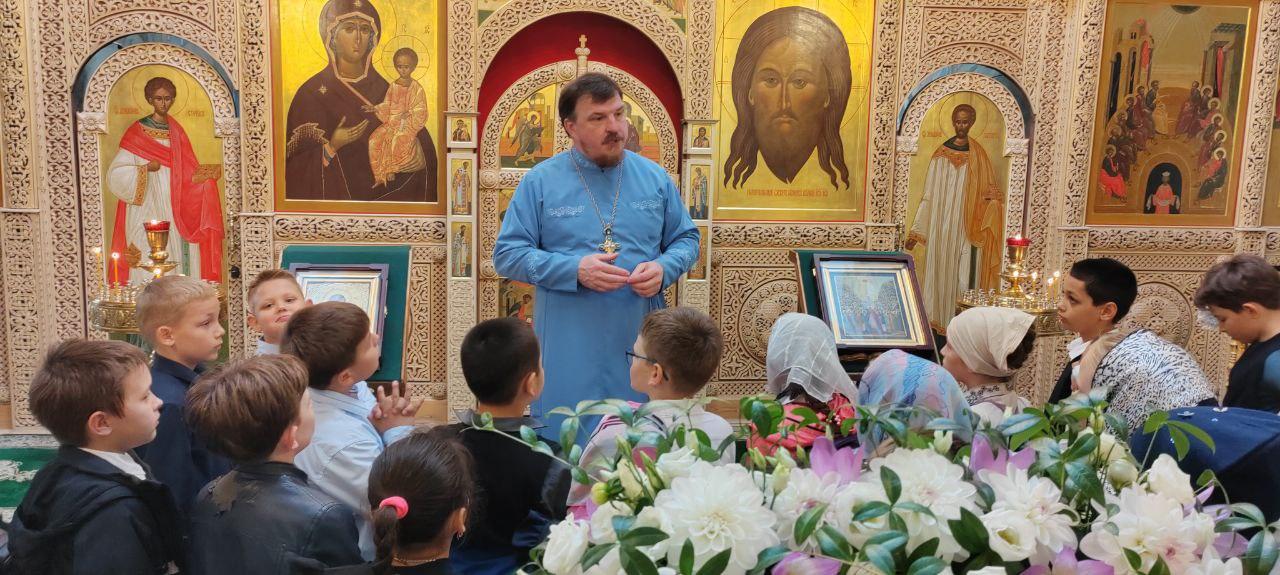 21 сентября в Свято-Духовском храме деревни Дубровки состоялась встреча настоятеля храма протоиерея Димитрия Колупаева с учащимися Подосинковской школы. Отец Димитрий рассказал детям о празднике Рождества Пресвятой Богородицы, а также о покровителях детей святом мученике Гаврииле Белостокском и преподобном Стилиане Пафлагонском.