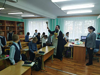 21 сентября, в праздник Рождества Пресвятой Богородицы, настоятель храма в честь иконы Божией Матери "Нечаянная Радость" поселка Некрасовского протоиерей Игорь Абрамов посетил Черновскую СОШ, совершил молебное пение, по окончании которого поздравил преподавателей и учащихся с праздником и окропил их святой водой.