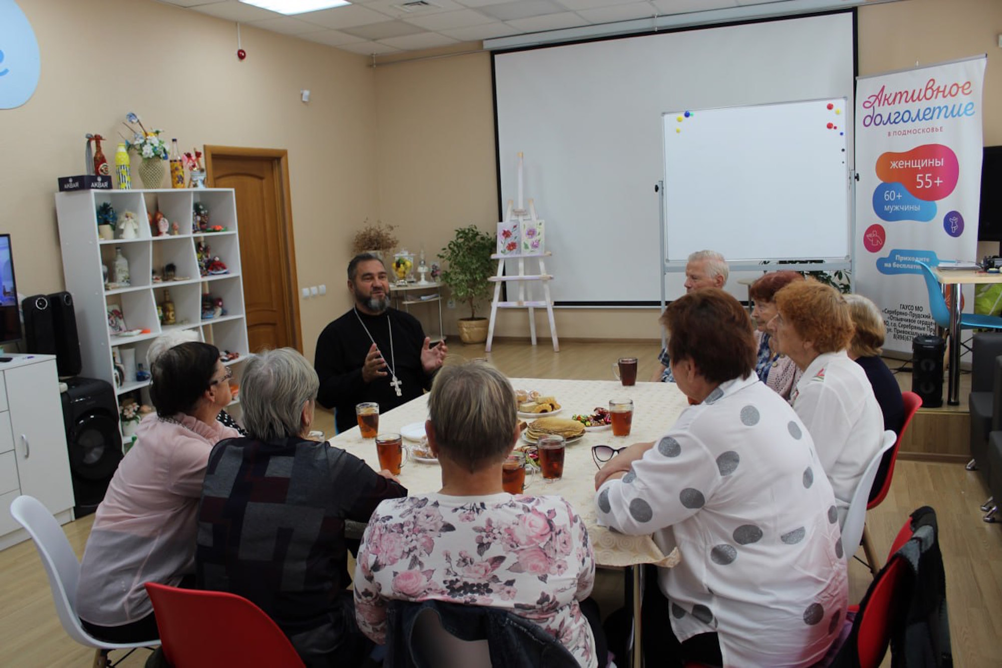 22 сентября ответственный в Серебряно-Прудском благочинии за церковную благотворительность и социальное служение, настоятель Успенского храма посёлка Успенский городского округа Серебряные Пруды иерей Владимир Шубин провел встречу с участниками клуба «Активное долголетие».