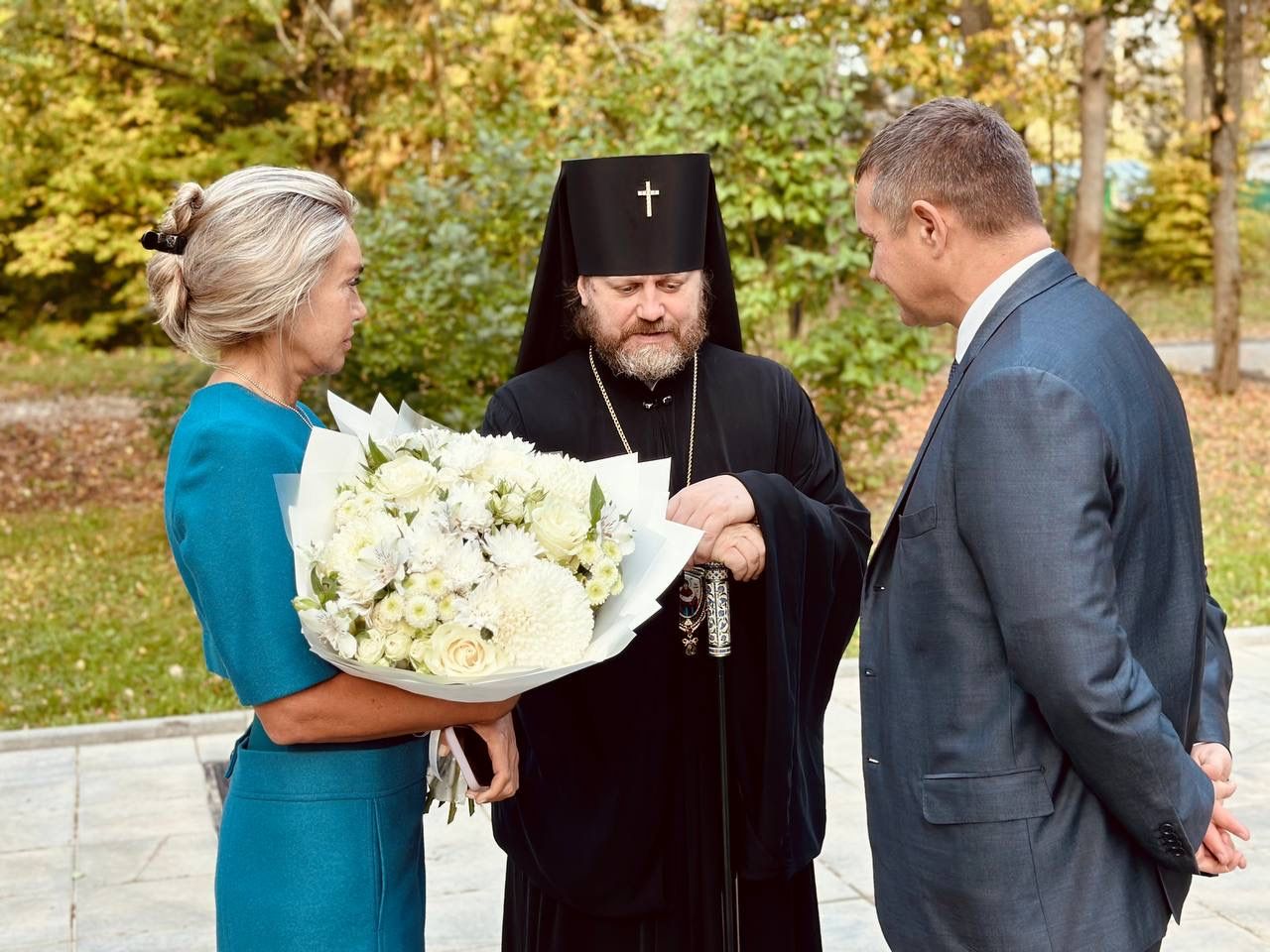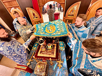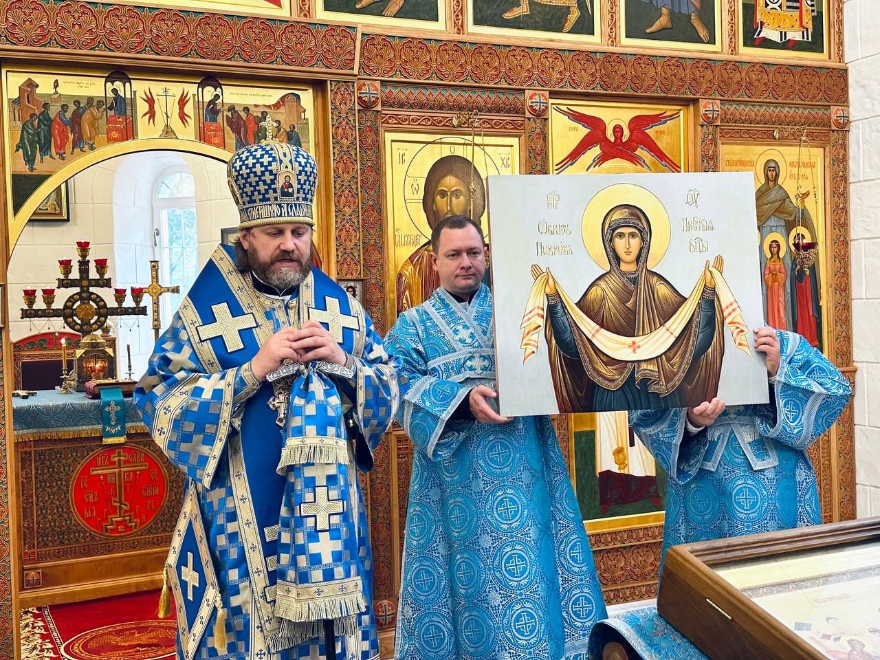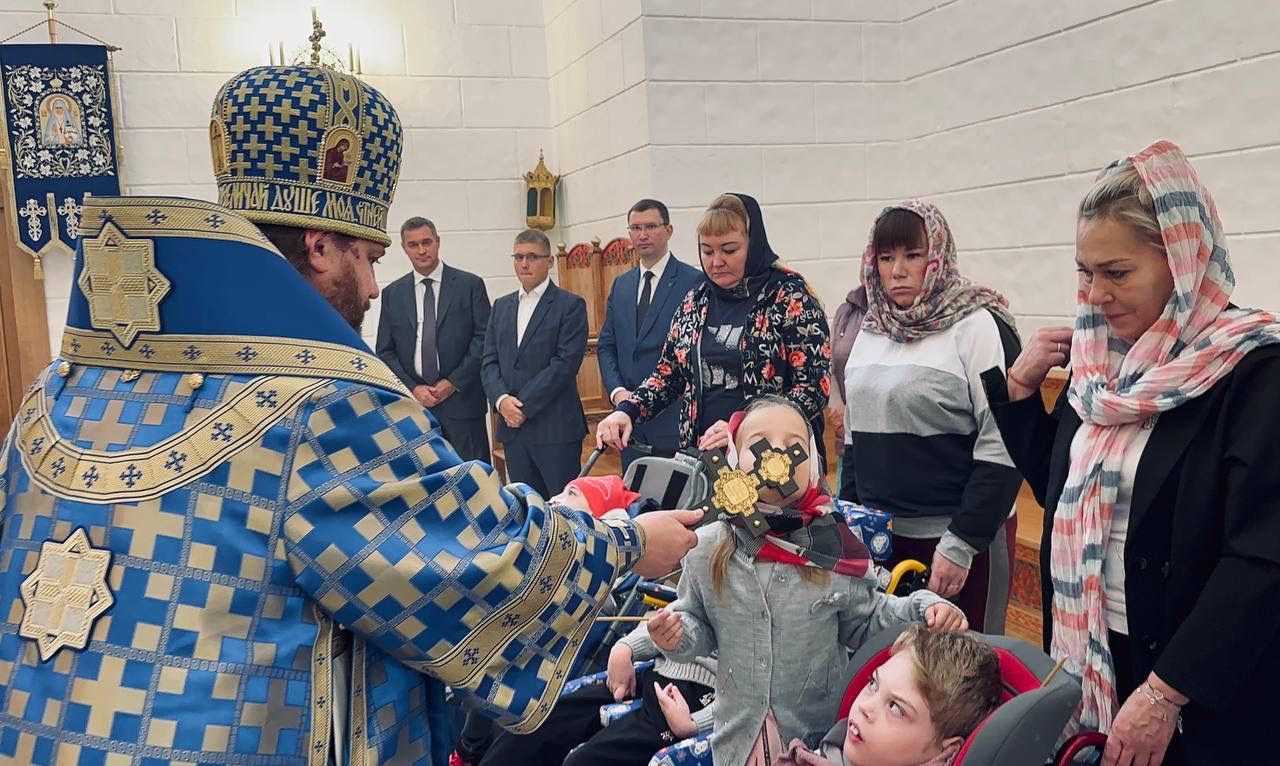 По окончании Божественной литургии на молитвенную память Владыка преподнес хоспису икону Покрова Пресвятой Богородицы.
