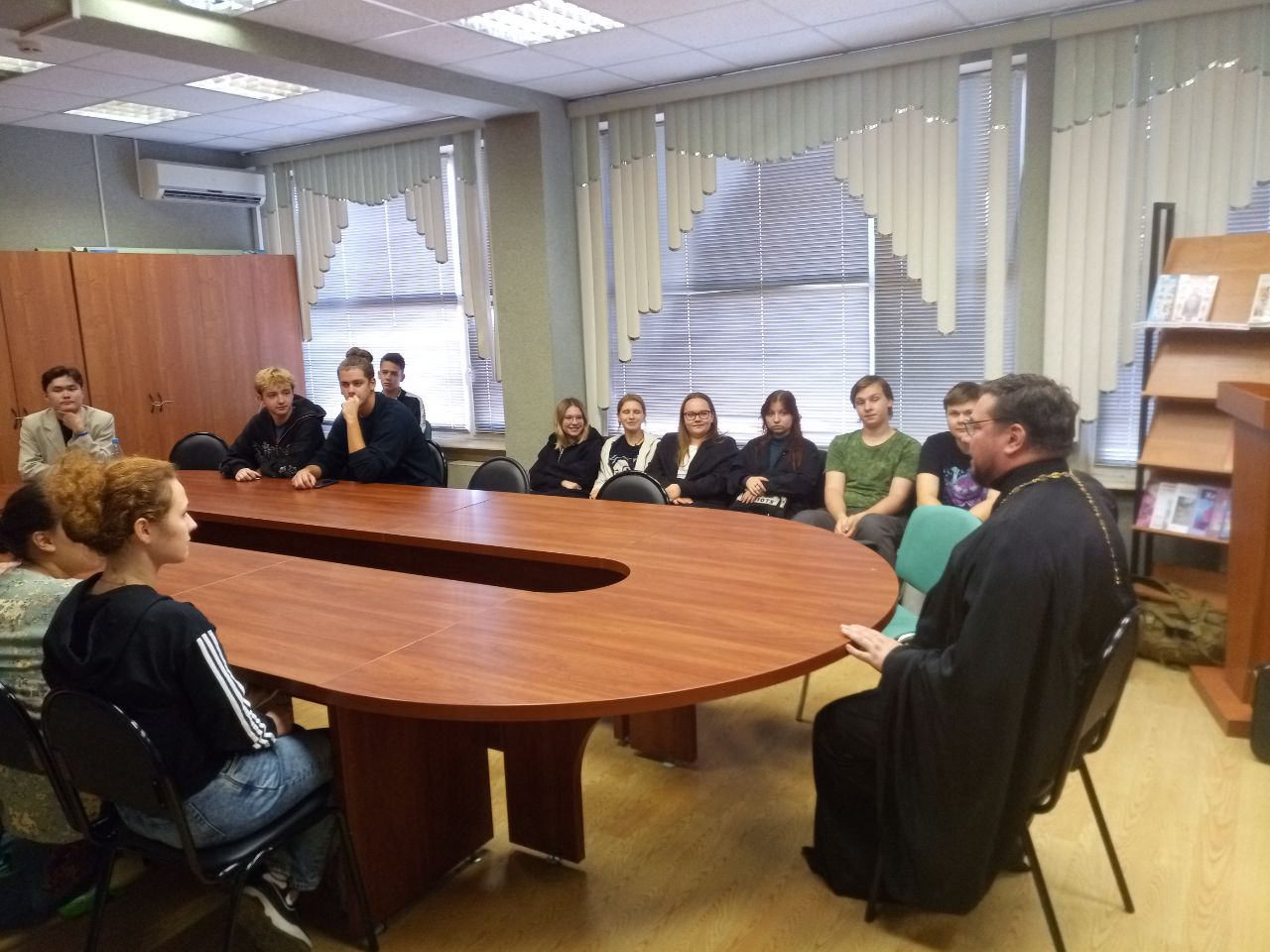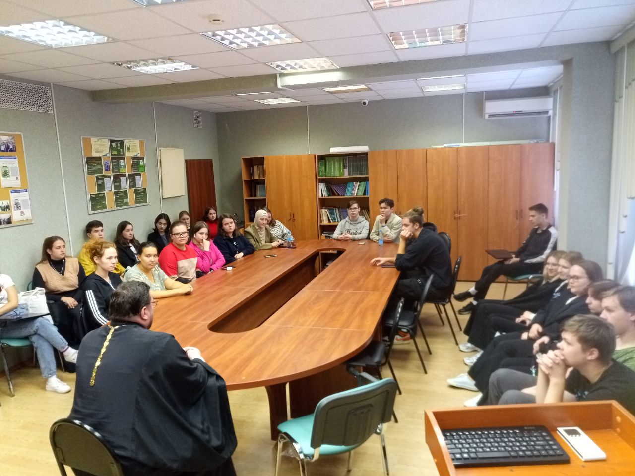 27 сентября 2023 года в рамках проекта Государственного университета просвещения (бывшего МОПИ, МПУ, МПГУ) "Встреча с выпускниками ВУЗа для передачи опыта подрастающему поколению педагогов" состоялась лекция для студентов Естественно-экологического факультета выпускника МПУ 1998 г., в настоящее время заведующего кафедрой библеистики Московской духовной академии, доцента кафедры педагогики Православного Свято-Тихоновского гуманитарного университета протоиерея Олега Мумрикова. Отец Олег рассказал об основных принципах православной педагогики, современном диалоге религии и науки, библейских исследованиях, приходском служении, жизни духовных учебных заведений, ответил на вопросы. В завершении встречи отец Олег пригласил студентов посетить приходской экологический парк при храме Святого мученика Уара в Мытищинском городском округе, а также МДА и ПСТГУ.