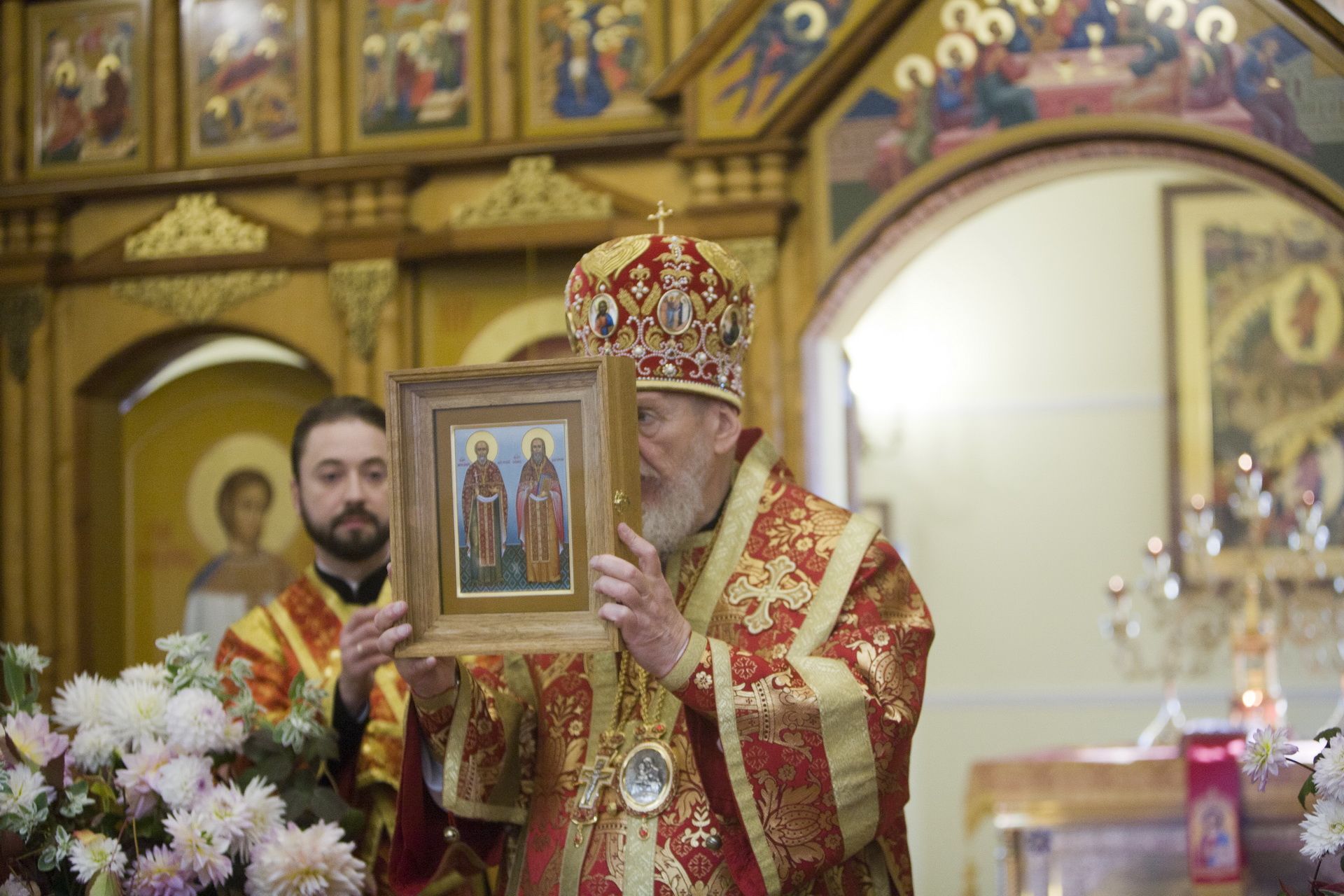 По окончании Литургии перед иконой святых мучениц Веры, Надежды, Любови и матери их Софии было совершено славление, после чего отец настоятель поблагодарил Владыку Николая за совершённое богослужение и преподнёс ему икону новомучеников Шатурских Александра Сахарова и Иоанна Тихомирова.