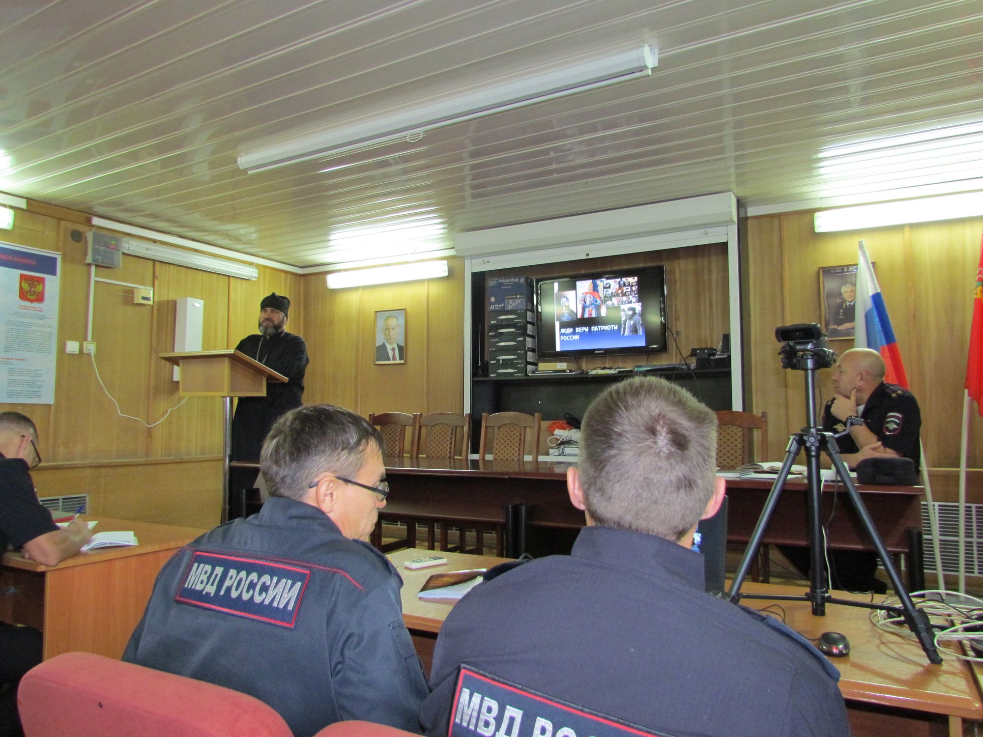 4 октября в рамках духовного окормления заместитель благочинного Серебряно-Прудского церковного округа священник Владимир Шубин провел беседу с личным составом ОВД по Серебряно-Прудскому району. Отец Владимир на исторических примерах русских святых напомнил собравшимся о патриотизме и любви к Родине.