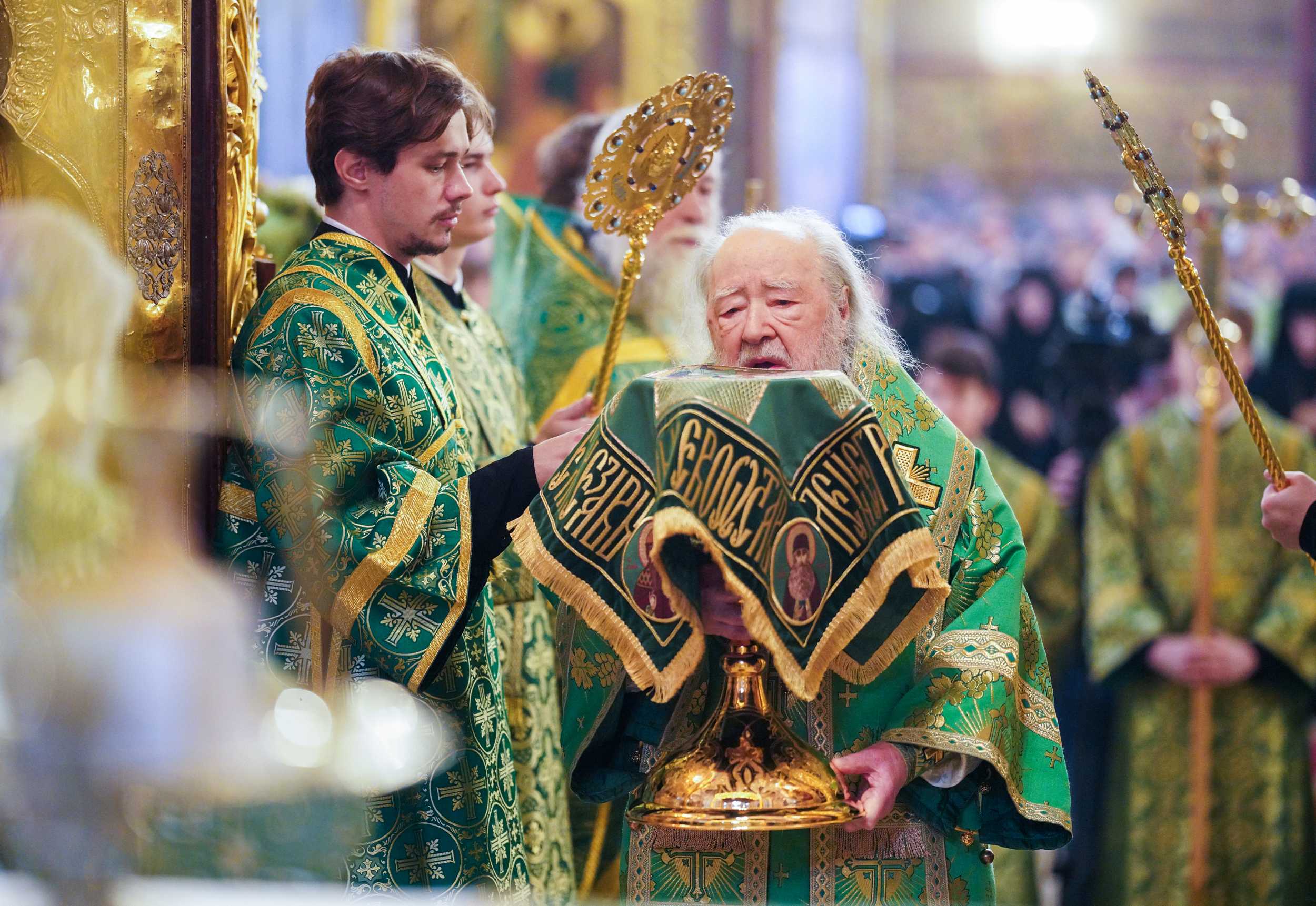 На сугубой ектении были вознесены особые прошения, Предстоятель Русской Православной Церкви прочитал молитву о Святой Руси.