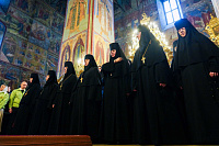 За богослужением молились: заместитель председателя Синодального отдела по монастырям и монашеству, настоятельница Зачатьевского ставропигиального женского монастыря игумения Иулиания (Каледа); заместитель председателя Синодального отдела по взаимоотношениям Церкви с обществом и СМИ И.В. Мещан; и.о. генерального директора художественно-производственного предприятия Русской Православной Церкви «Софрино» А.В. Потемкин; руководитель секретариата Всемирного русского народного собора С.Ю. Рудов; настоятельницы ряда женских монастырей Русской Православной Церкви, прибывшие в Лавру на престольный праздник, многочисленные паломники.