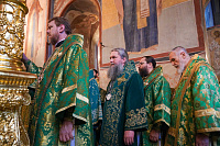 Его Святейшеству сослужили: митрополит Ювеналий (Поярков); архиепископ Одинцовский и Красногорский Фома, руководитель Административного секретариата Московской Патриархии; епископ Балашихинский и Орехово-Зуевский Николай; епископ Сергиево-Посадский и Дмитровский Кирилл, ректор Московской духовной академии, наместник Троице-Сергиевой лавры; протопресвитер Владимир Диваков, секретарь Патриарха Московского и всея Руси по г. Москве; архимандрит Алексий (Туриков), личный секретарь Святейшего Патриарха Кирилла; архимандрит Никандр (Пилишин), председатель Финансово-хозяйственного управления Московского Патриархата; протоиерей Дионисий Казанцев, секретарь Патриарха Московского и всея Руси по Московской области; священник Василий Лосев, руководитель Юридической службы Московской митрополии; насельники Троице-Сергиевой лавры в священном сане; сонм духовенства.