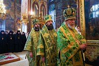 Патриаршее богослужение посетили: член Совета Федерации ФС РФ А.Г. Ярошук; председатель Комитета по строительству и ЖКХ Государственной Думы ФС РФ С.А. Пахомов; глава Сергиево-Посадского городского округа Московской области Д.А. Акулов; старший вице-президент ПАО «ГМК "Норильский никель"» С.Г. Малышев.
