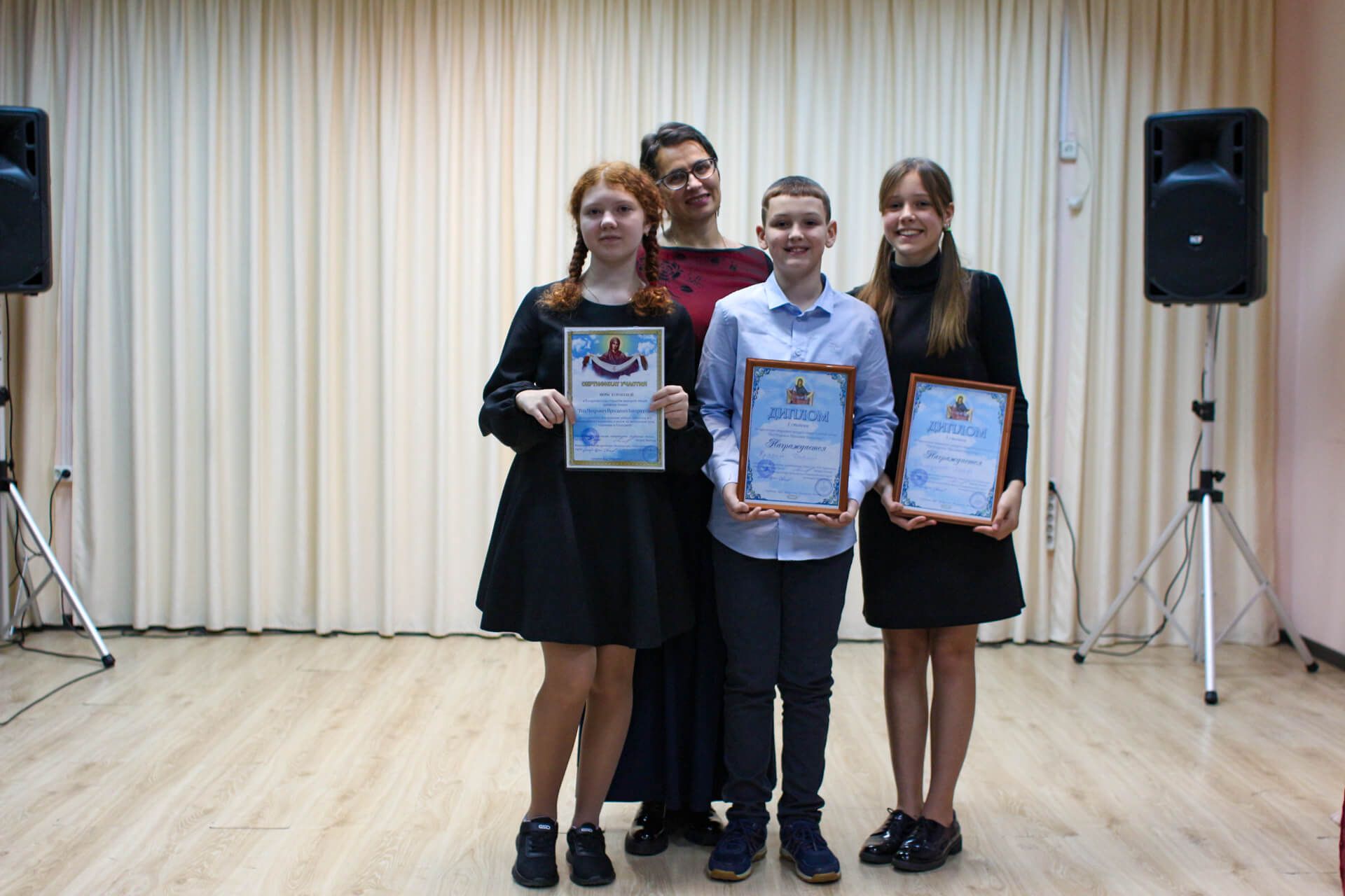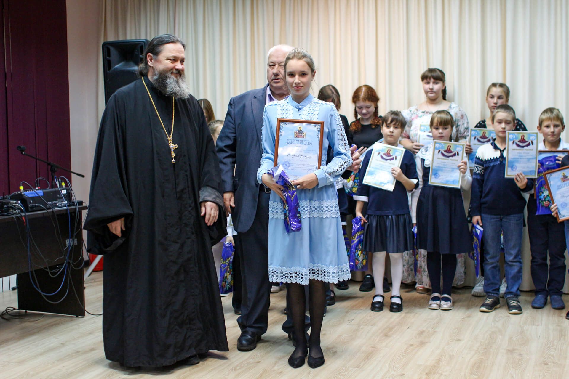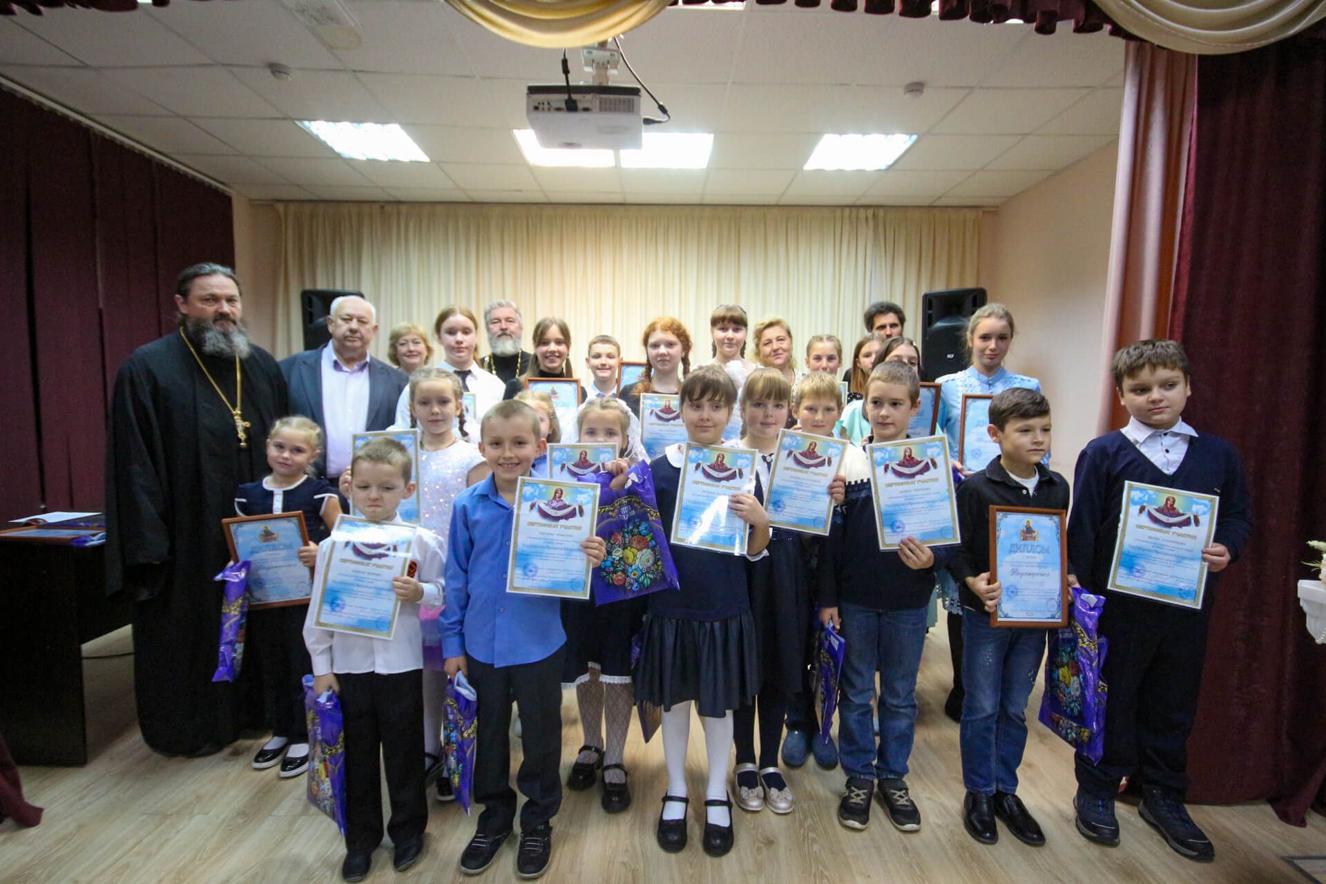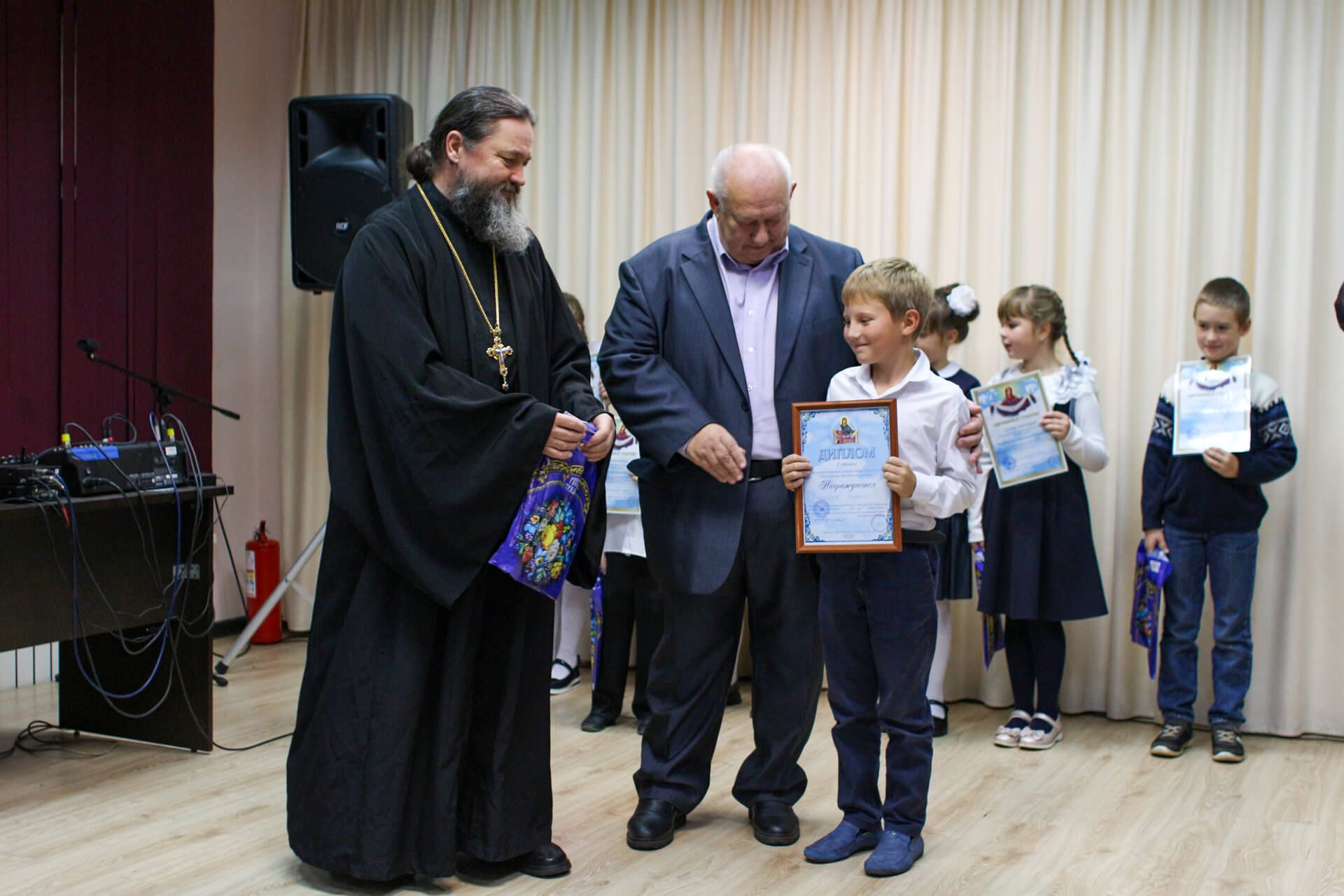 Вела конкурсную программу педагог воскресной школы Ильинского храма с. Петровское О.В. Лысова. Подарком участникам конкурса были стихи и песни в исполнении поэта, руководителя центра довузовского образования «Чудо» г. Воскресенск В. В. Сергеева.