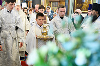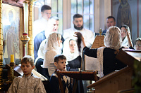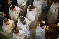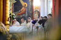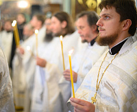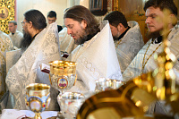 Проповедь по запричастном стихе произнёс духовник Сергиево-Посадской епархии Игумен Сергий (Амуницин).