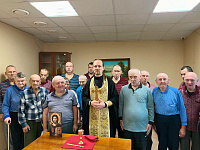 Сначала иерей Иоанн в актовом зале учреждения совершил молебен и причастил собравшихся.