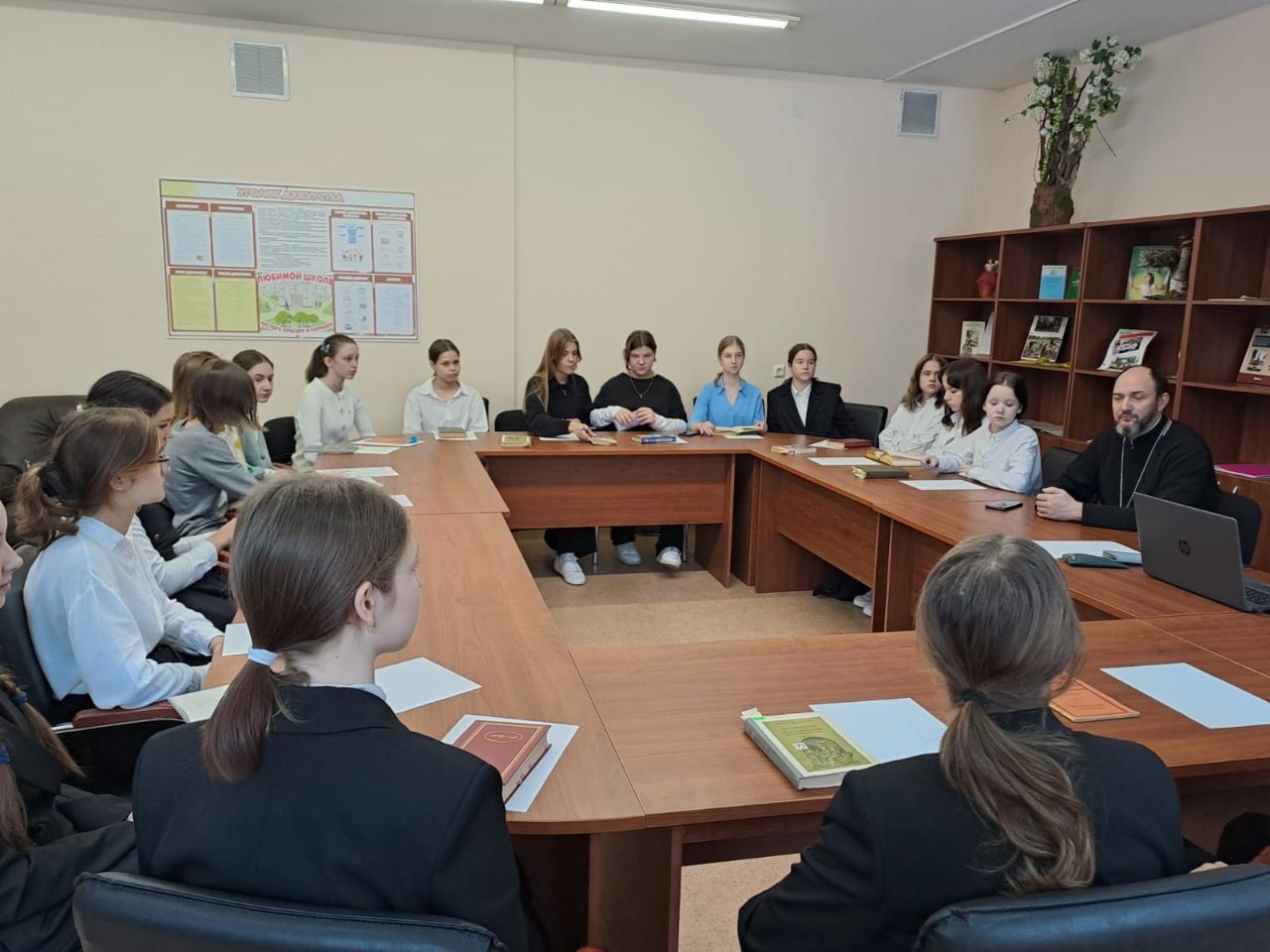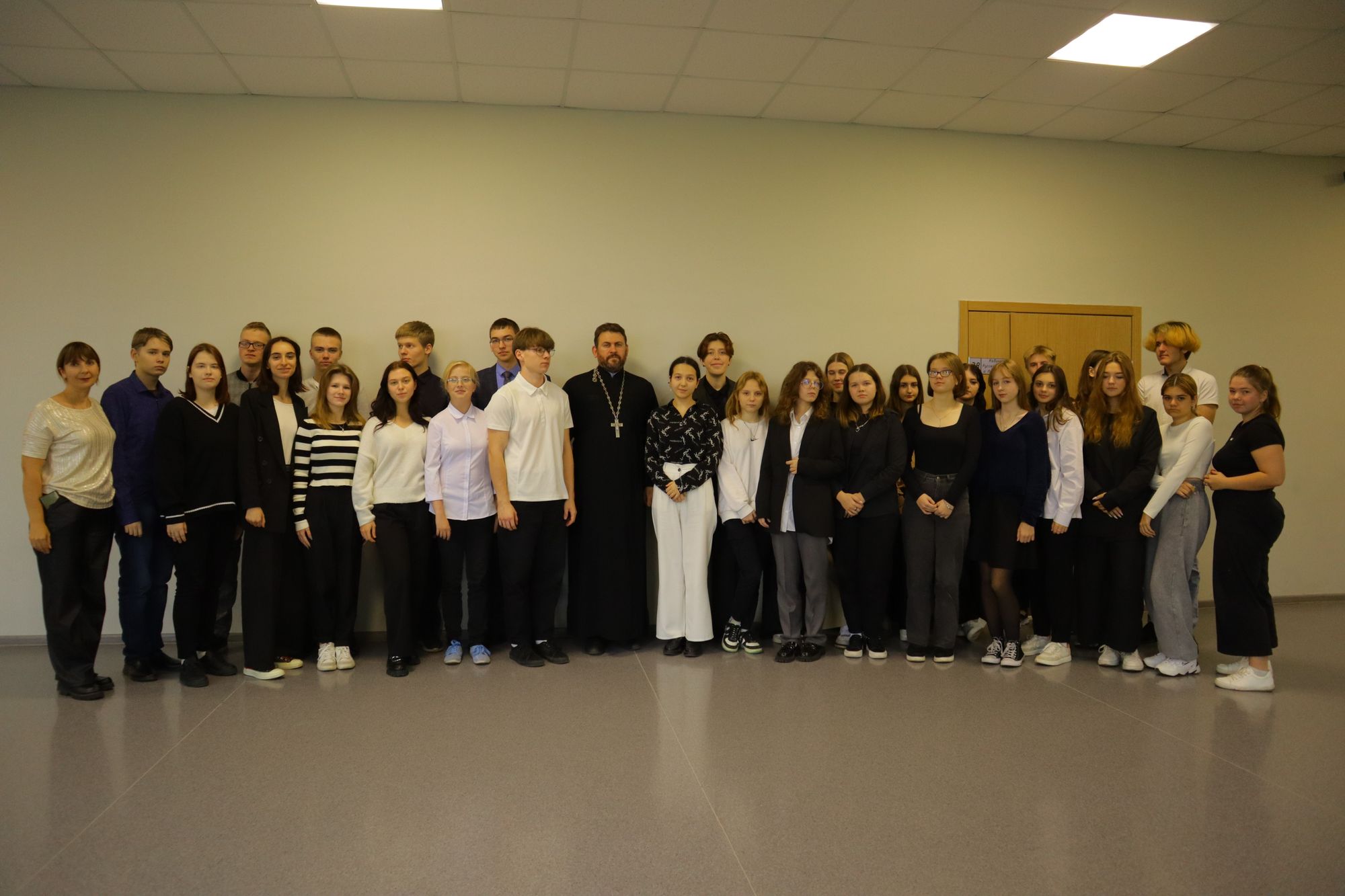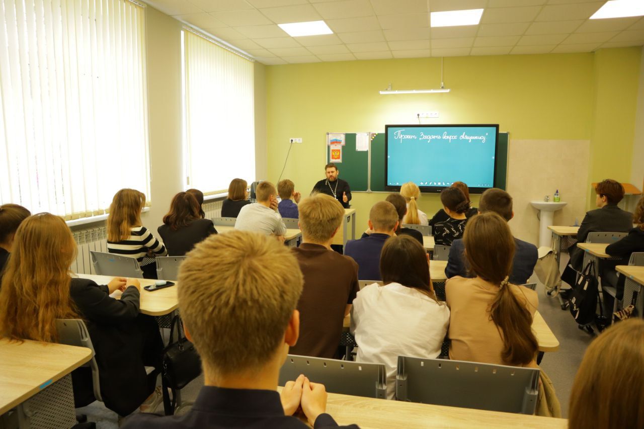 25 октября в рамках совместного проекта Министерства и Московской митрополии «Задай вопрос священнику» состоялась встреча ответственного по образованию в благочинии, настоятеля Никитского храма с. Софьино священника Александра Ионова с учащимися 10 и 11 классов Лицея г. Бронницы.