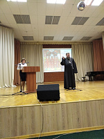 27 октября в Гимназии им. А.А. Пушкина г. Бронницы прошел круглый стол на тему "В чем опасность безверия? («Маленькие трагедии» А. С. Пушкина)" для учащихся 8-9 классов. В мероприятии принял участие настоятель Ильинского храма пос. Денежниково иерей Константин Соломахин.