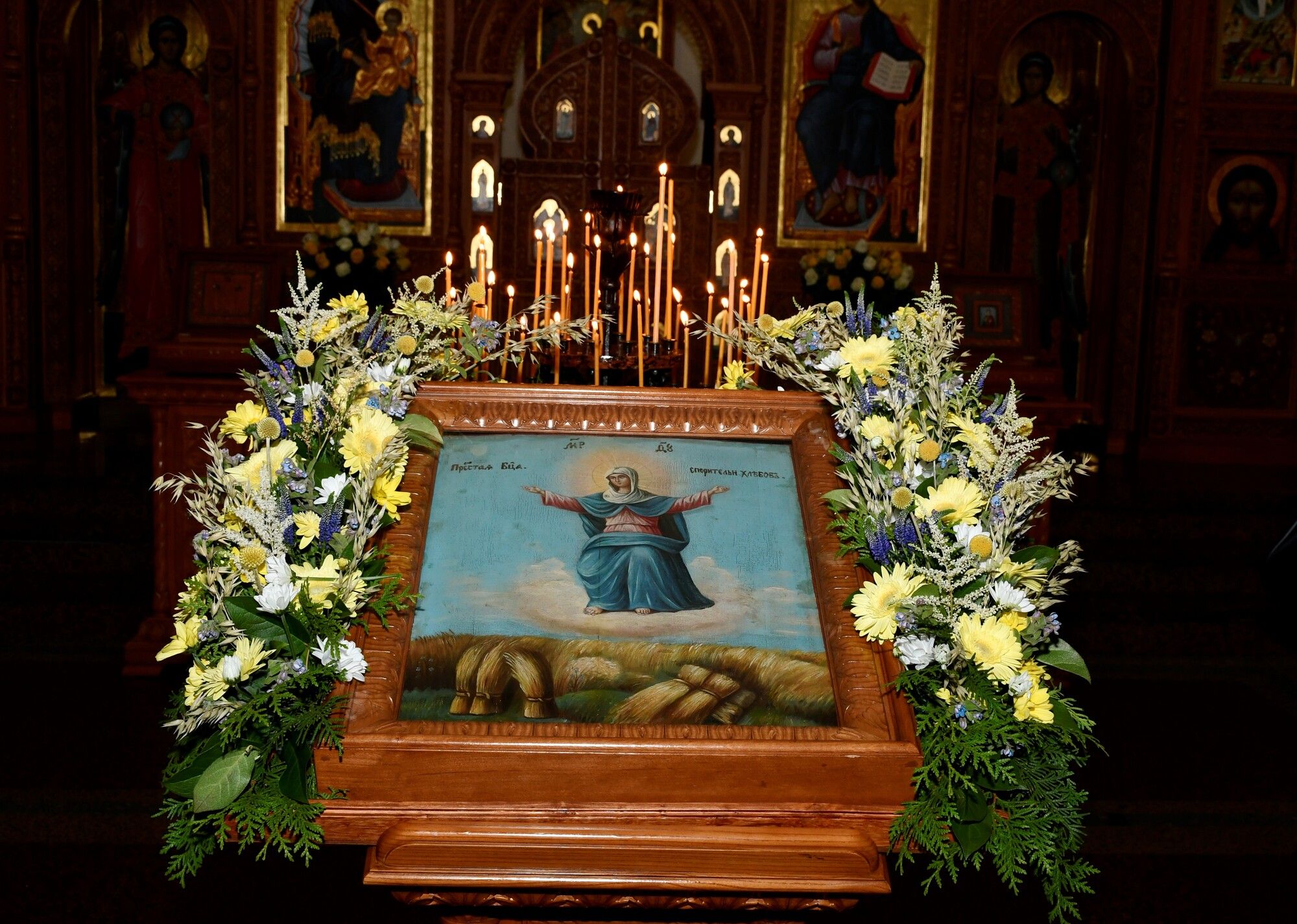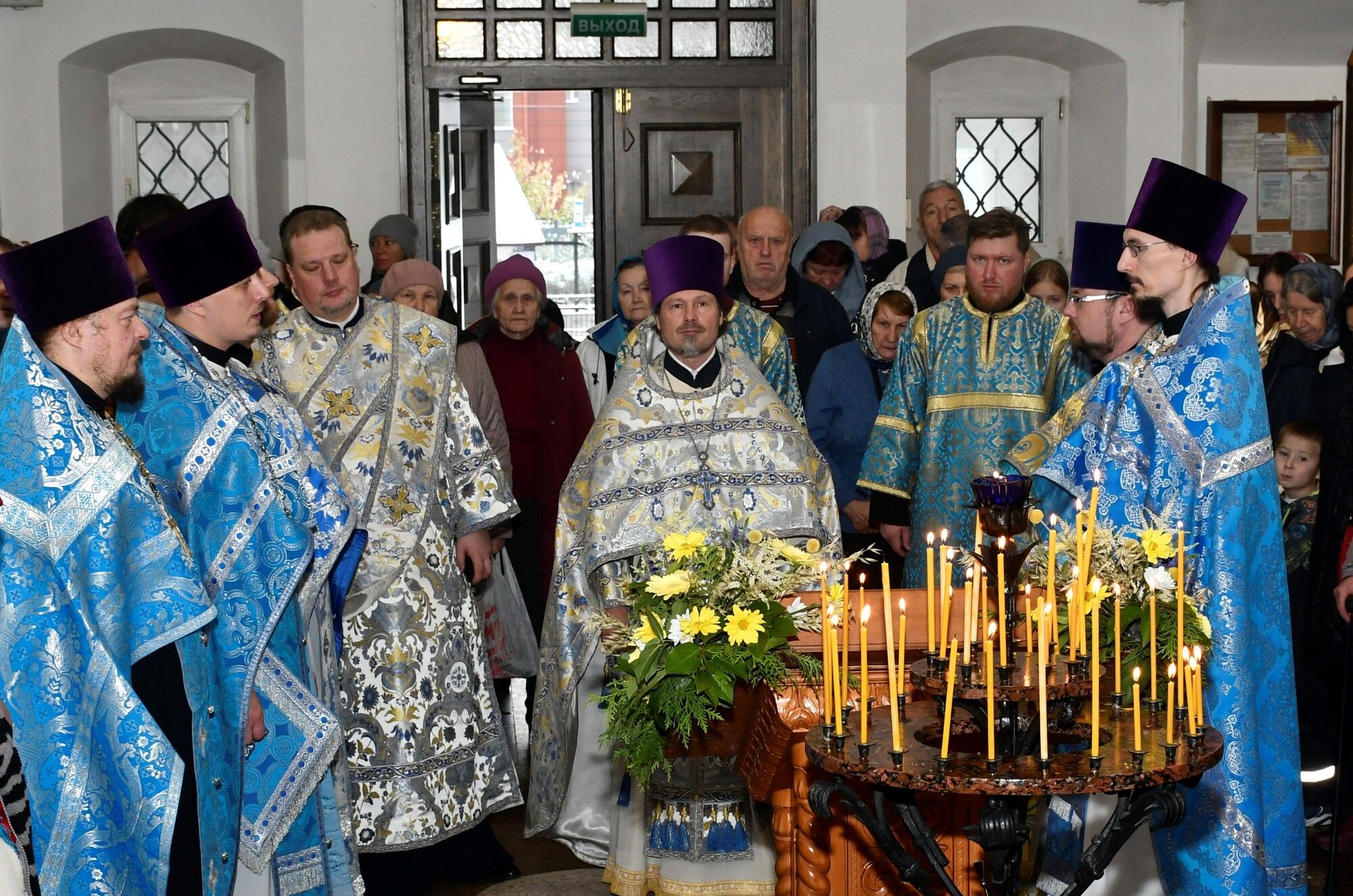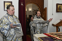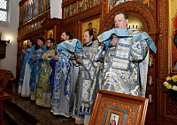 28 октября, по случаю престольного праздника в честь иконы Божией Матери «Спорительница хлебов» в Преображенском храме г. Долгопрудный благочинный Долгопрудненского церковного округа протоиерей Андрей Хмызов в сослужении благочинного Королевского церковного округа, председателя Ревизионной комиссии Сергиево-Посадской епархии иерея Димитрия Поповского и духовенства Долгопрудненского благочиния совершил Божественную литургию.