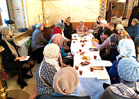 В ходе собрания был прочитан акафист преподобномученице Елисавете. Состоялось обсуждение текущих вопросов деятельности объединения. Клирик Троицкого храма иерей Олег Бобров провел беседу о православному богослужении.