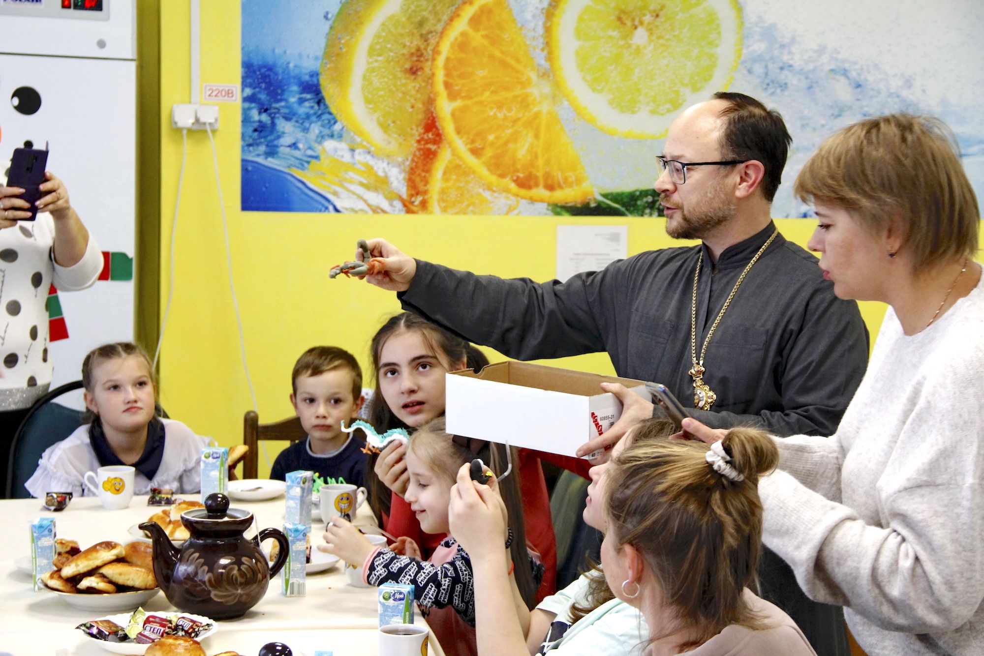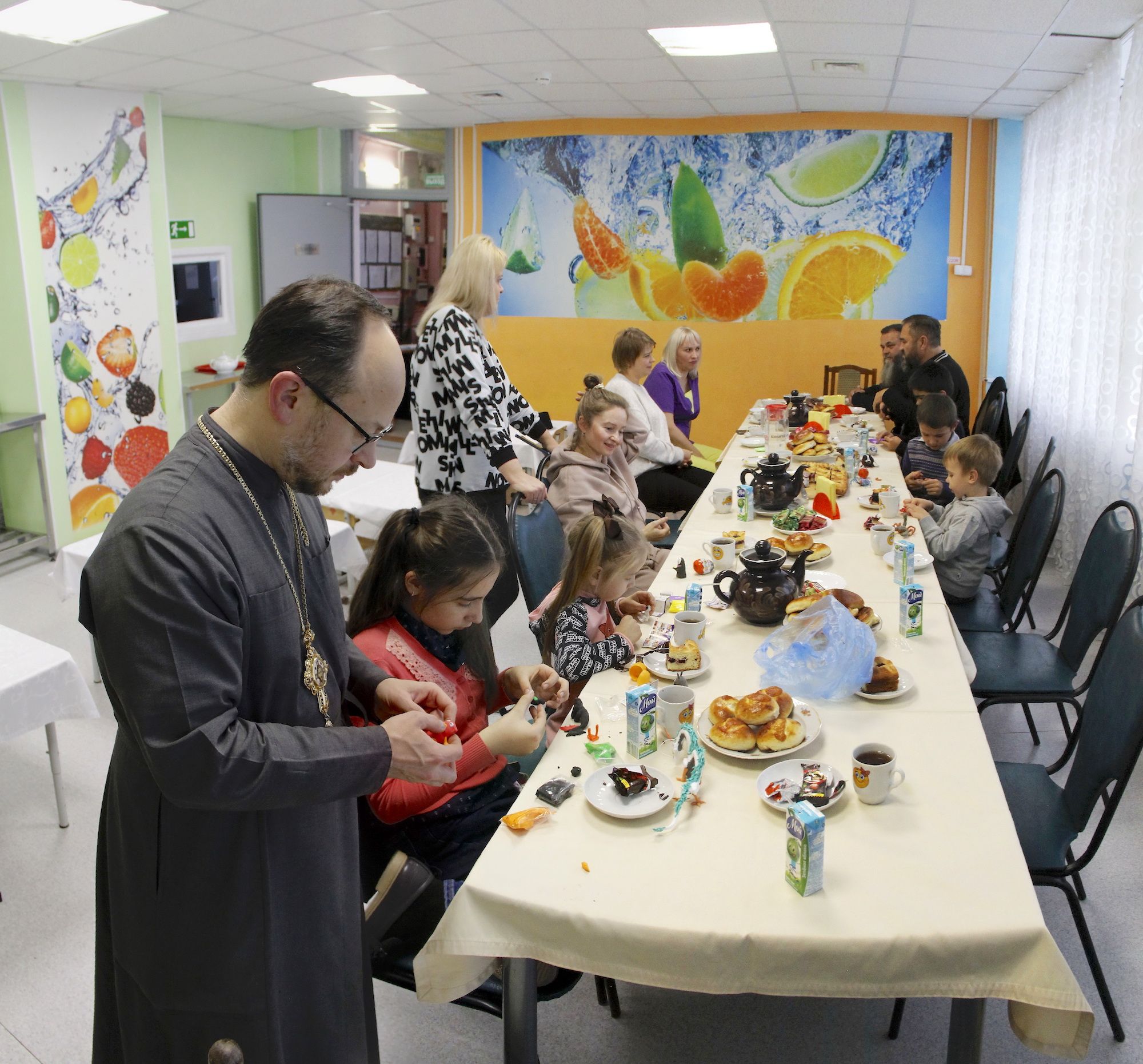 Священнослужители пообщались с воспитанниками учреждения за чаепитием и вручили им сладкие подарки.