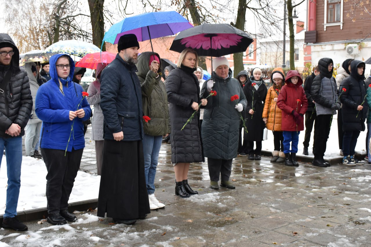 30 октября у мемориала «Жертвам политических репрессий» состоялась акция, посвященная Дню памяти жертв политических репрессий. В мероприятии приняли участие представители администрации округа, родные и близкие репрессированных, юнармейцы, студенты Егорьевского авиационного технического колледжа. От 1-го Егорьевского благочиния на митинге присутствовал настоятель Алексиевского храма священник Александр Черемухин.
