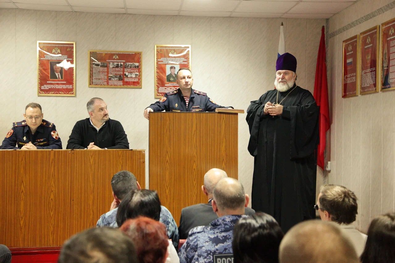 К поздравлениям главы присоединился председатель Совета депутатов городского округа Кашира Сергей Буров и настоятель храма благоверных князей Петра и Февронии протоиерей Виталий Коценко. Он отметил огромный вклад Росгвардейцев в оказании гуманитарной помощи для фронта, поддержке семей бойцов СВО, протоиерей Виталий Коценко лично участвует в гуманитарных миссиях, он передал слова благодарности от бойцов и из зоны СВО.