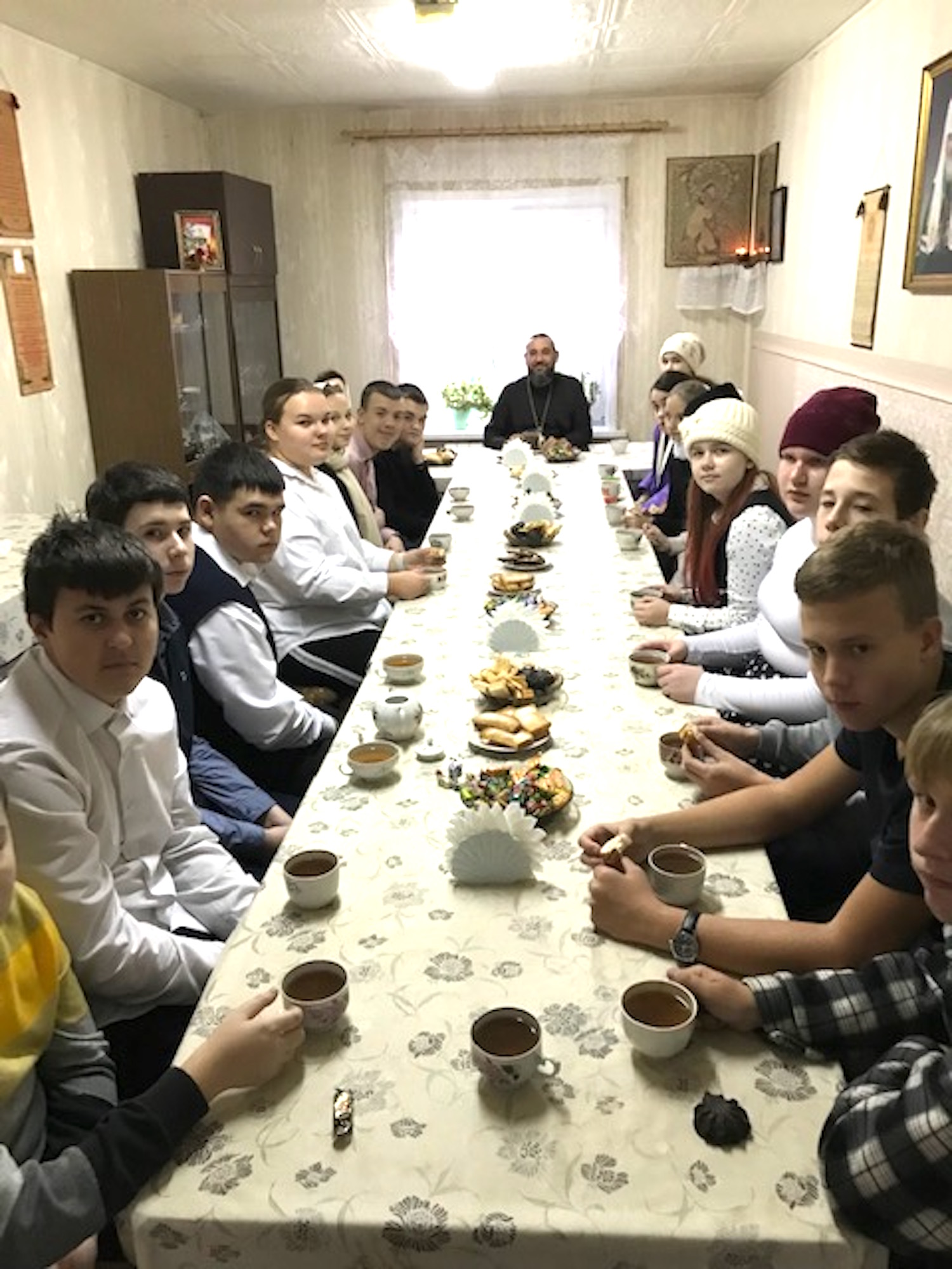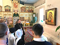 Ответственный в 1-ом и 2-ом Луховицких благочиниях за церковную благотворительность и социальное служение, настоятель Троицкого храма протоиерей Константин Колесников провел для гостей экскурсию, рассказал об истории и святынях. В завершении встречи отец Константин подарил ребятам маленькие образа Божией Матери «Казанская» и пригласил на чаепитие.