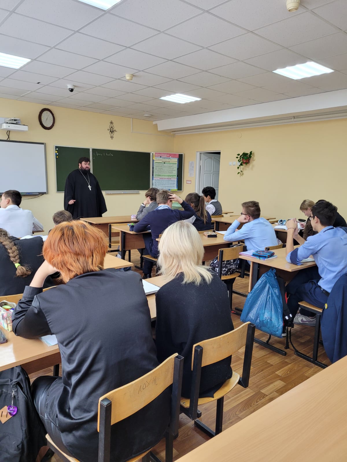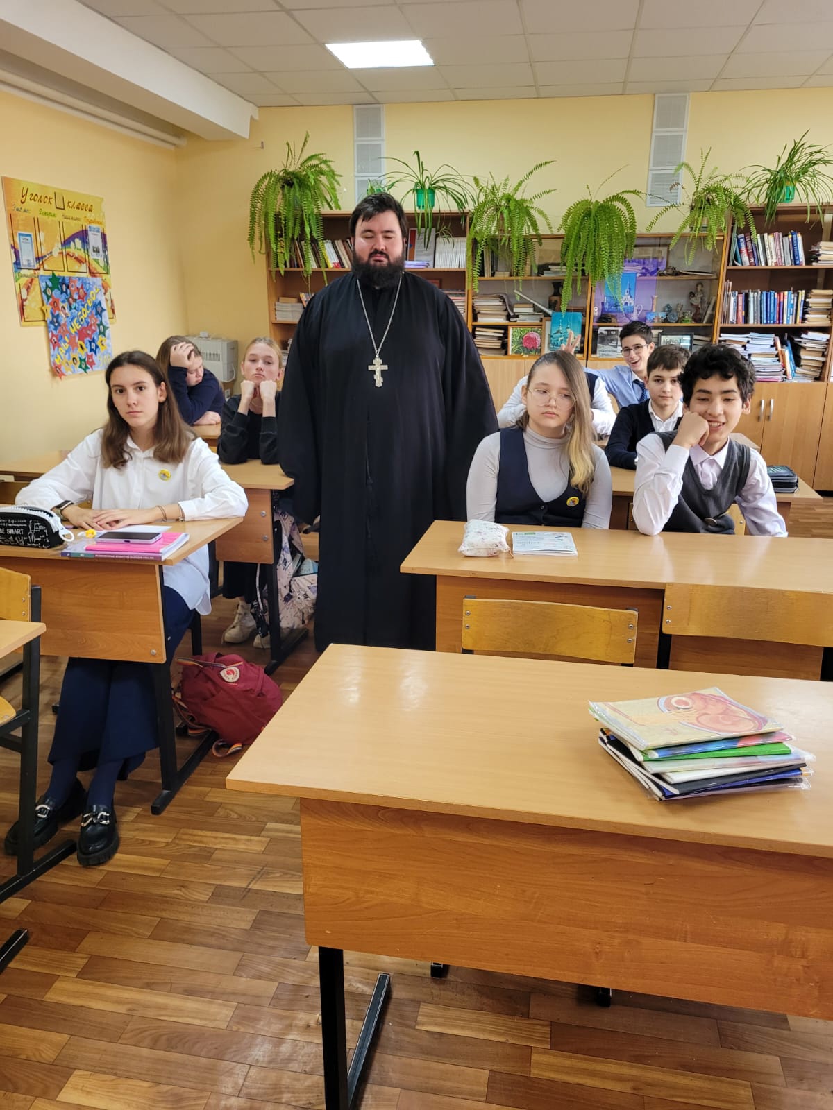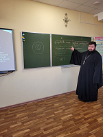 7 ноября 2023 года клирик храма великомученика Пантелеимона иерей Давид Абрамсон провел серию бесед на тему «Наука и религия» в старших классах лицея №6 города Дубны. Целью беседы являлось показать ученикам, что между наукой и религией нет противопоставления.
