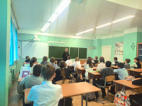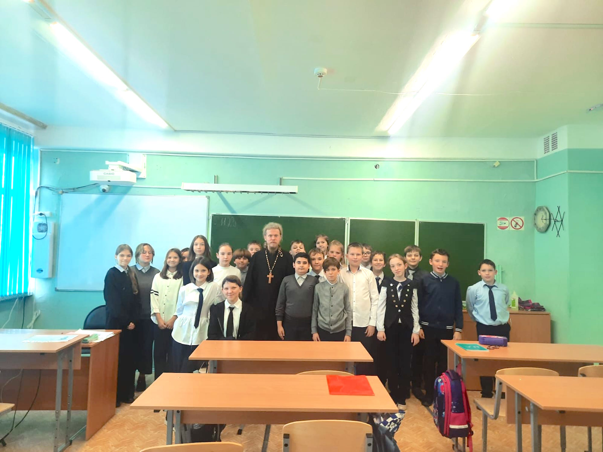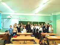 В ходе посещения отец Димитрий провел два урока с учащимися пятых классов, на которых поднимались вопросы счастья, любви, веры и служения.