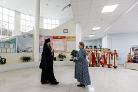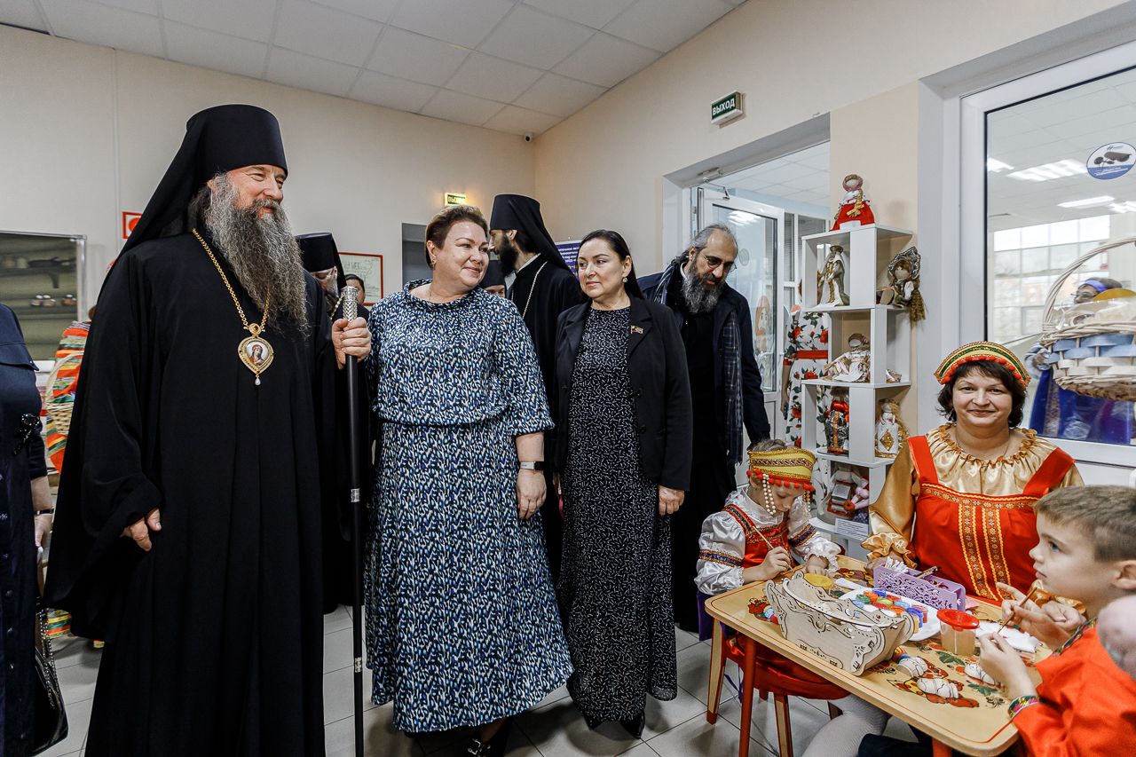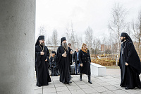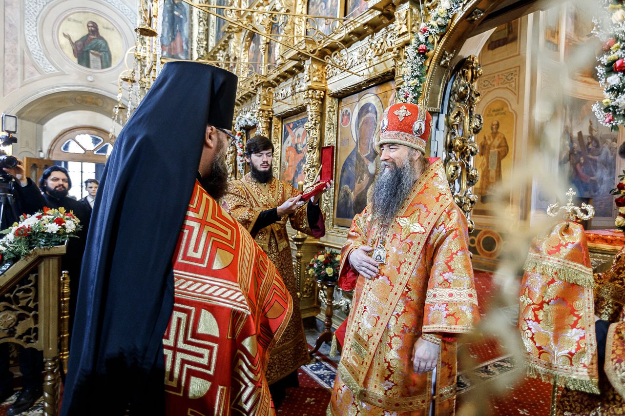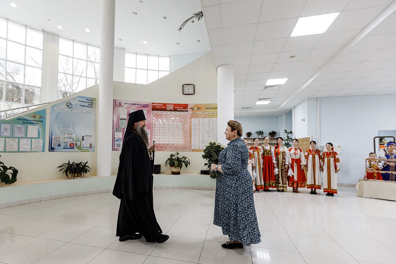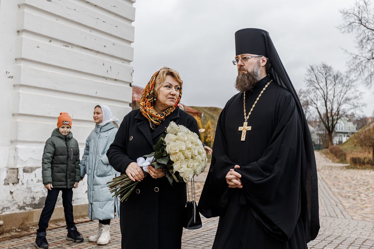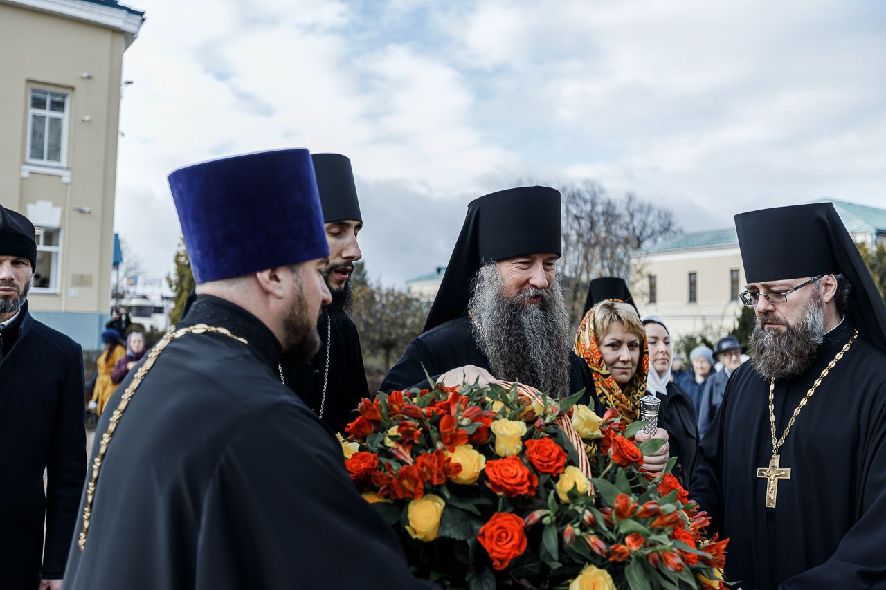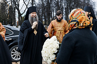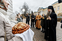Затем иеромонах Иосиф (Романов) выразил слова благодарности Владыке за архипастырский визит и преподнес ему в дар панагию с образом Пресвятой Богородицы «Невская Скоропослушница».