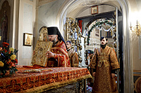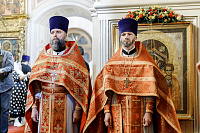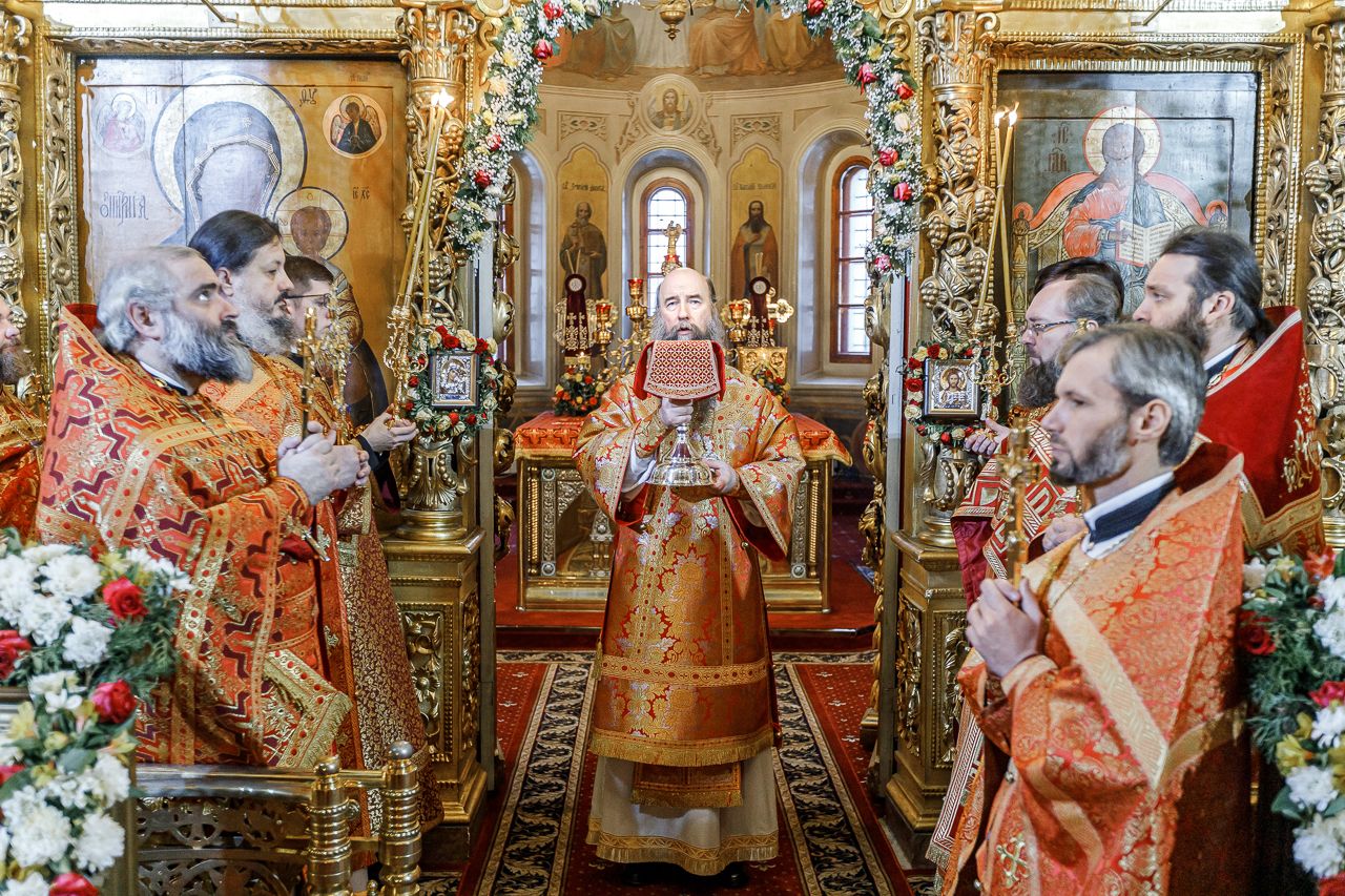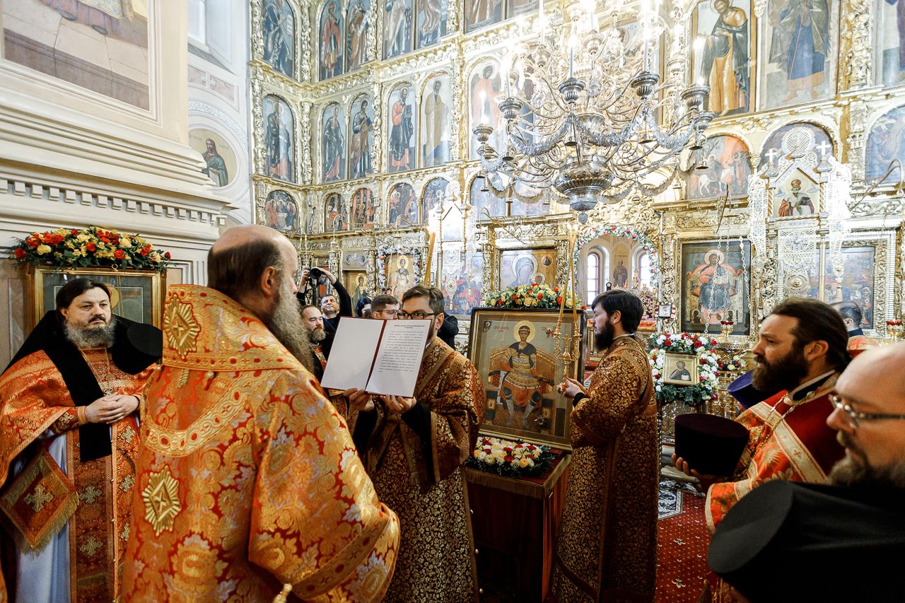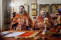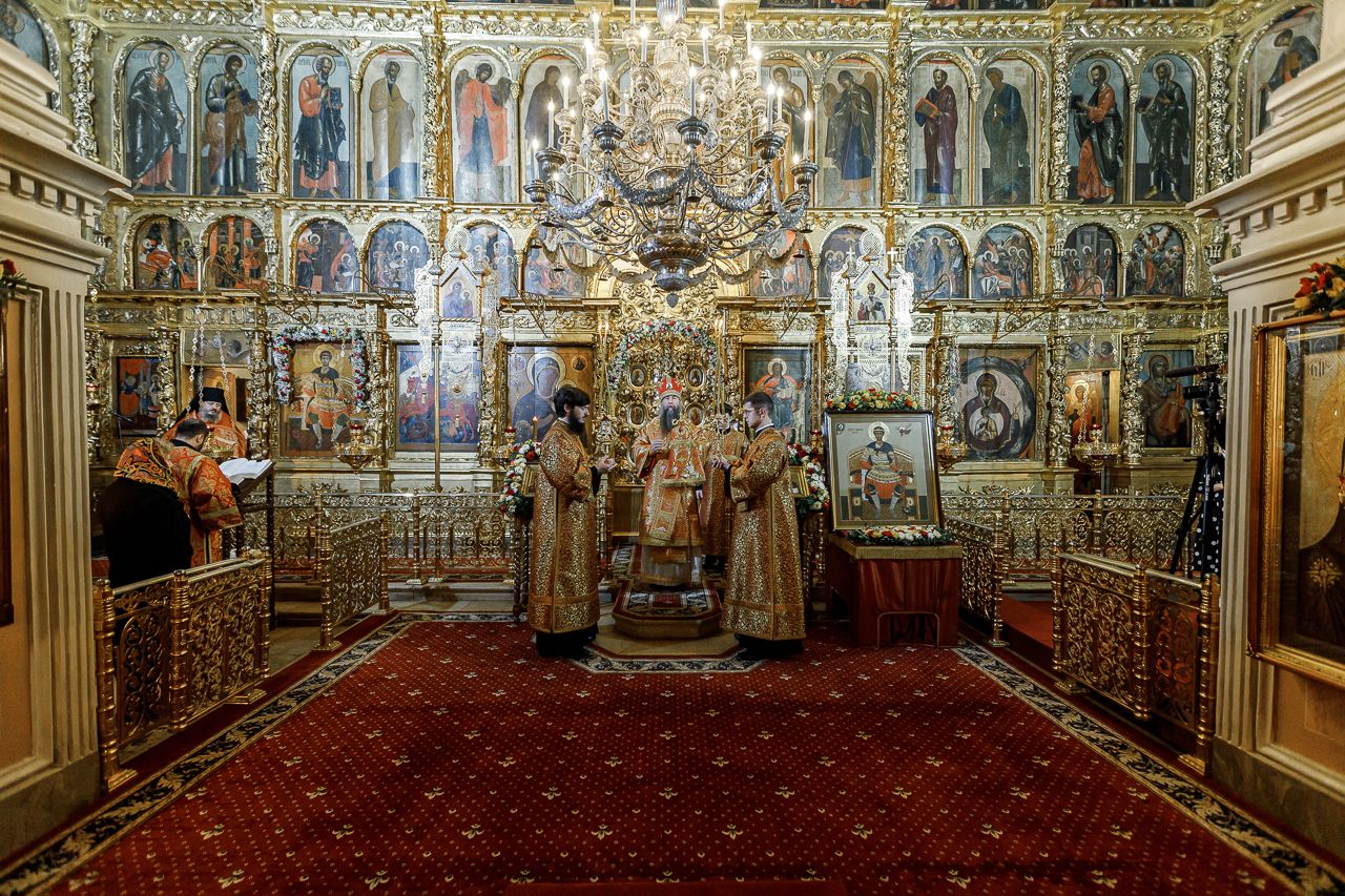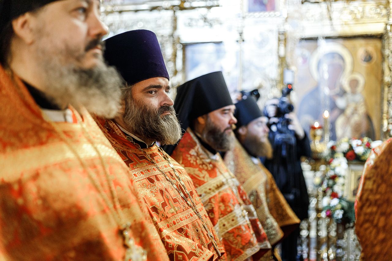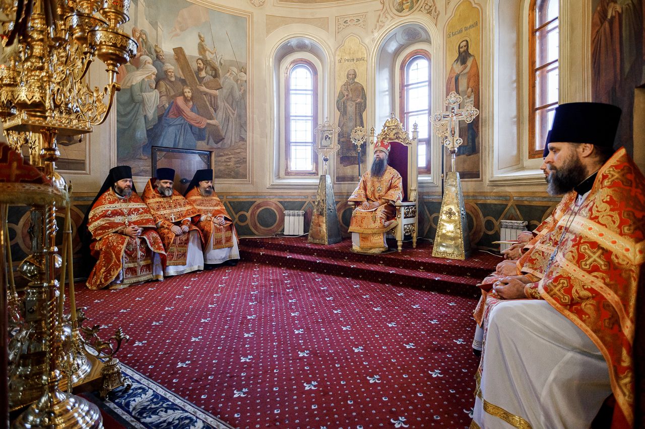 Его Преосвященству сослужили: благочинный Дмитровского церковного округа иеромонах Иосиф (Романов), благочинный Дубненско-Талдомского церковного округа протоиерей Павел Мурзич, благочинный Рогачевского церковного округа иерей Сергий Сафронов, благочинный монастырей Сергиево-Посадской епархии игумен Алексий (Горлычев), благочинный Яхромского церковного округа иерей Сергий Бернацкий, настоятель Борисоглебского мужского монастыря г. Дмитрова игумен Августин (Шорников), а также приглашенное духовенство.